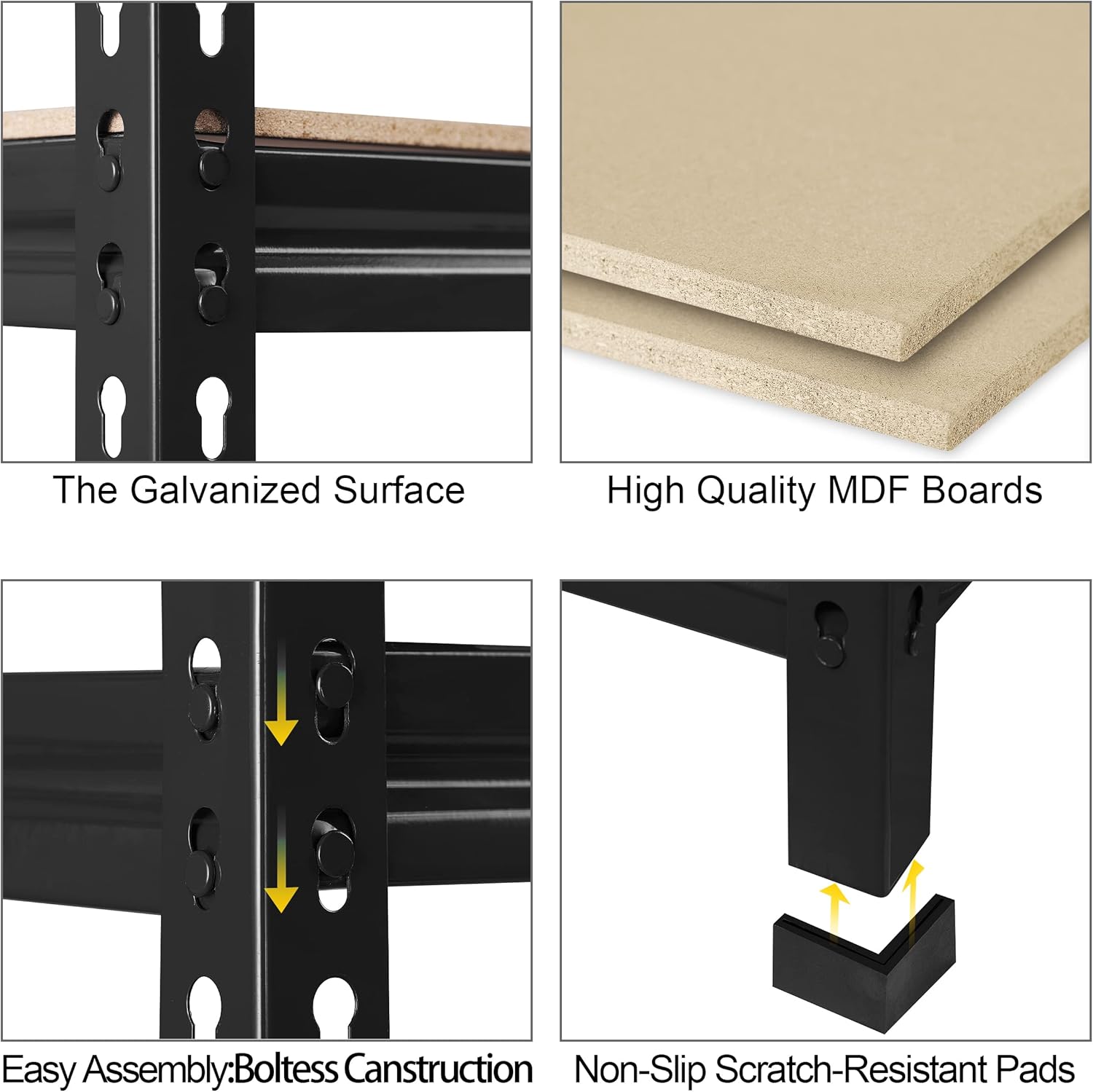 - ă10 Minutes Easy AssemblyăThe industrial shelving adopts a bolt-free interlocking design and can be quickly assembled in just 10 minutes. It comes with a rubber mallet and gloves to make the installation process simple and efficient. Tips: Evenly distribute the items on each shelf to ensure the stability and load-bearing capacity of the basement storage shelves