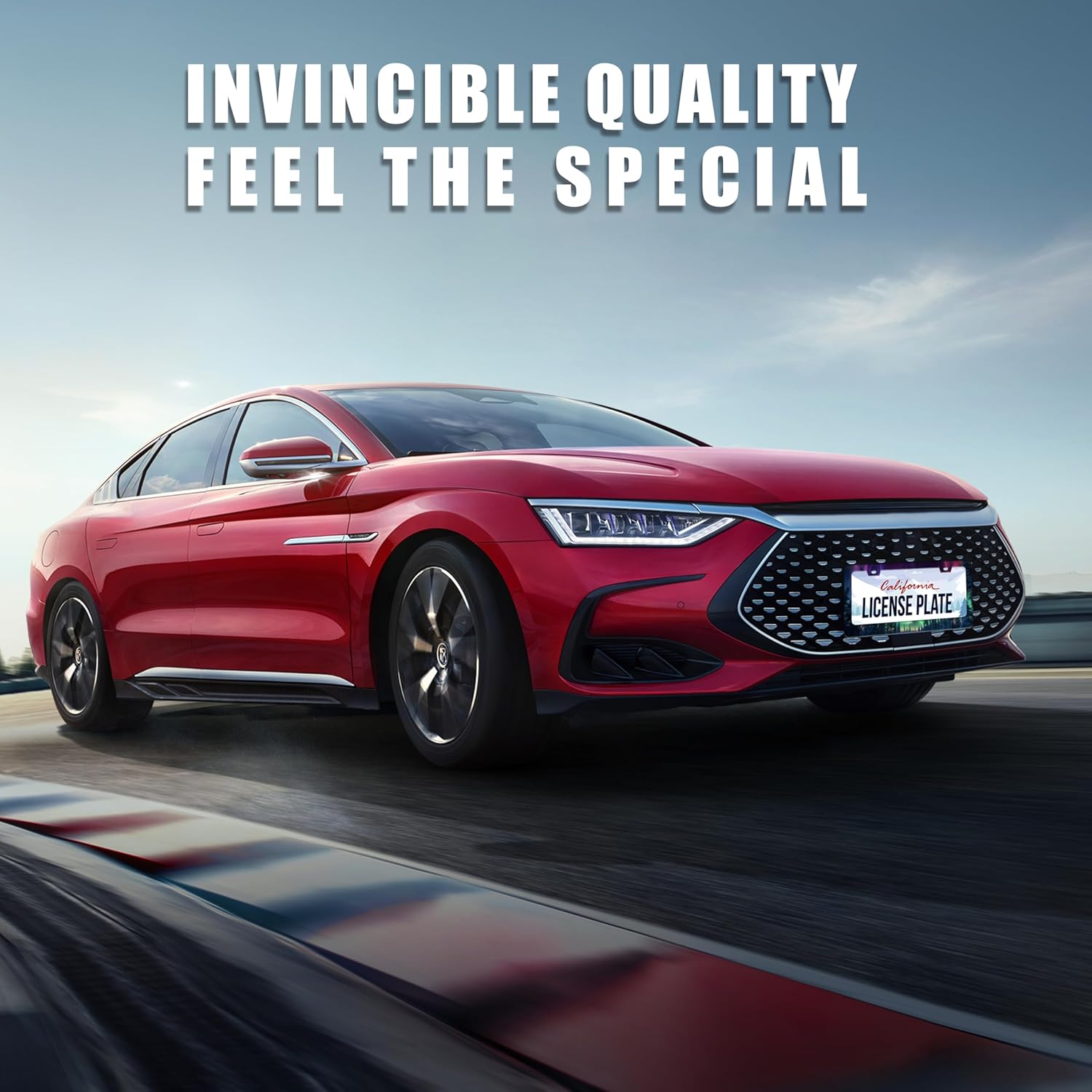 - 【Standard License Plate Size】:Our license plate frame size is 12.2 x 6.3 inches. This license plate frame will fit most of the standard license plates in the United States and Canada, and perfectly match your car license plate accessories.