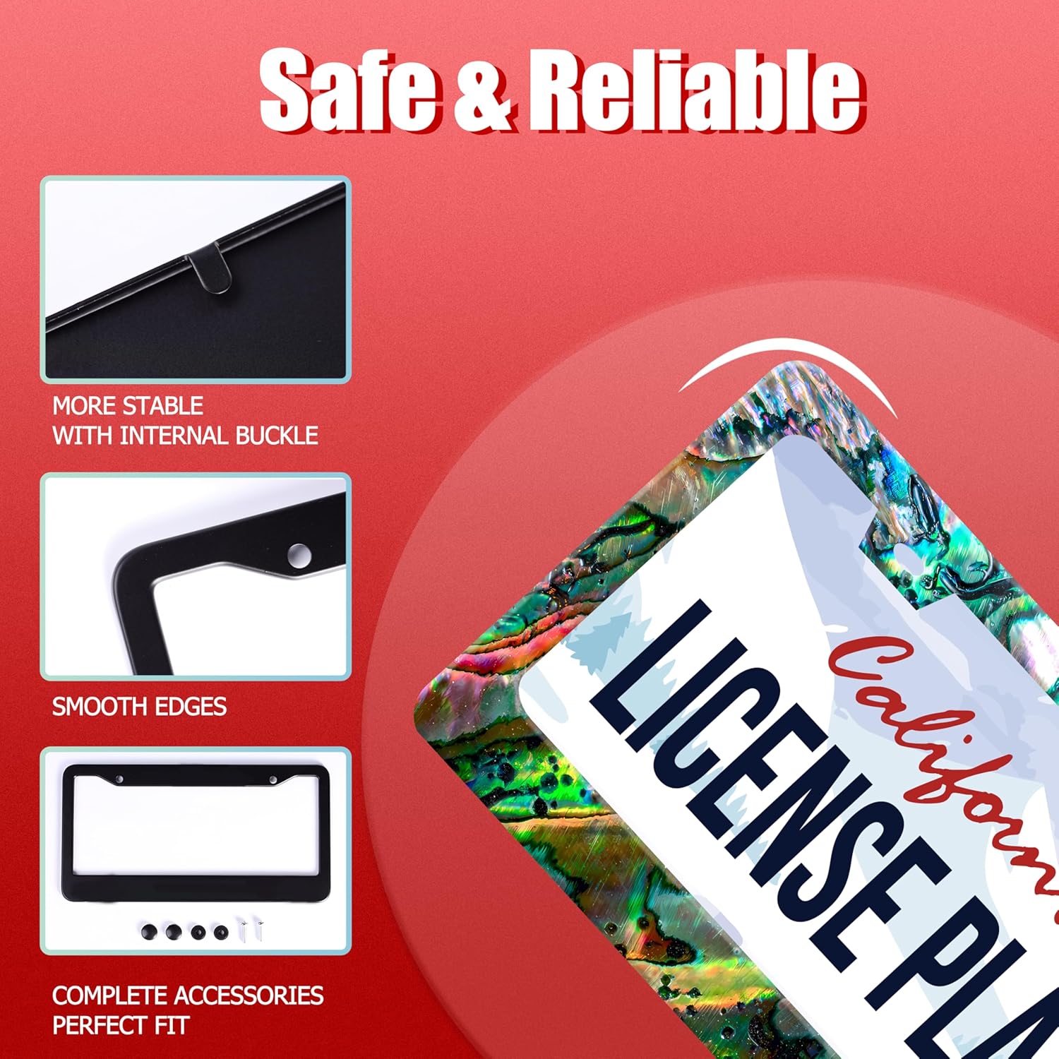 Personalized License Plate Frame Faux Abalone Stainless Steel Accessory Faux Shell License Plate Holder Funny Car Decorative 2 Holes Screws Fits Us Standard License Plates 12.2 X 6.3 in for Men Women