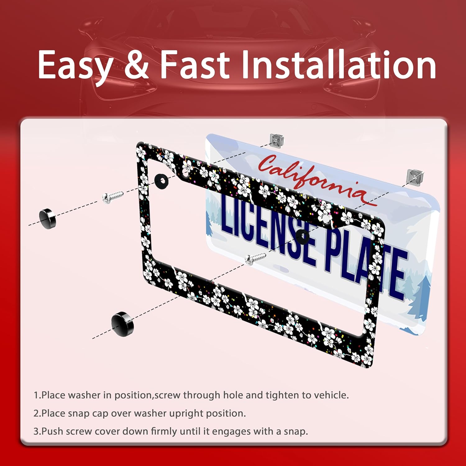 - 【Standard License Plate Size】:Our license plate frame size is 12.2 x 6.3 inches. This license plate frame will fit most of the standard license plates in the United States and Canada, and perfectly match your car license plate accessories.
