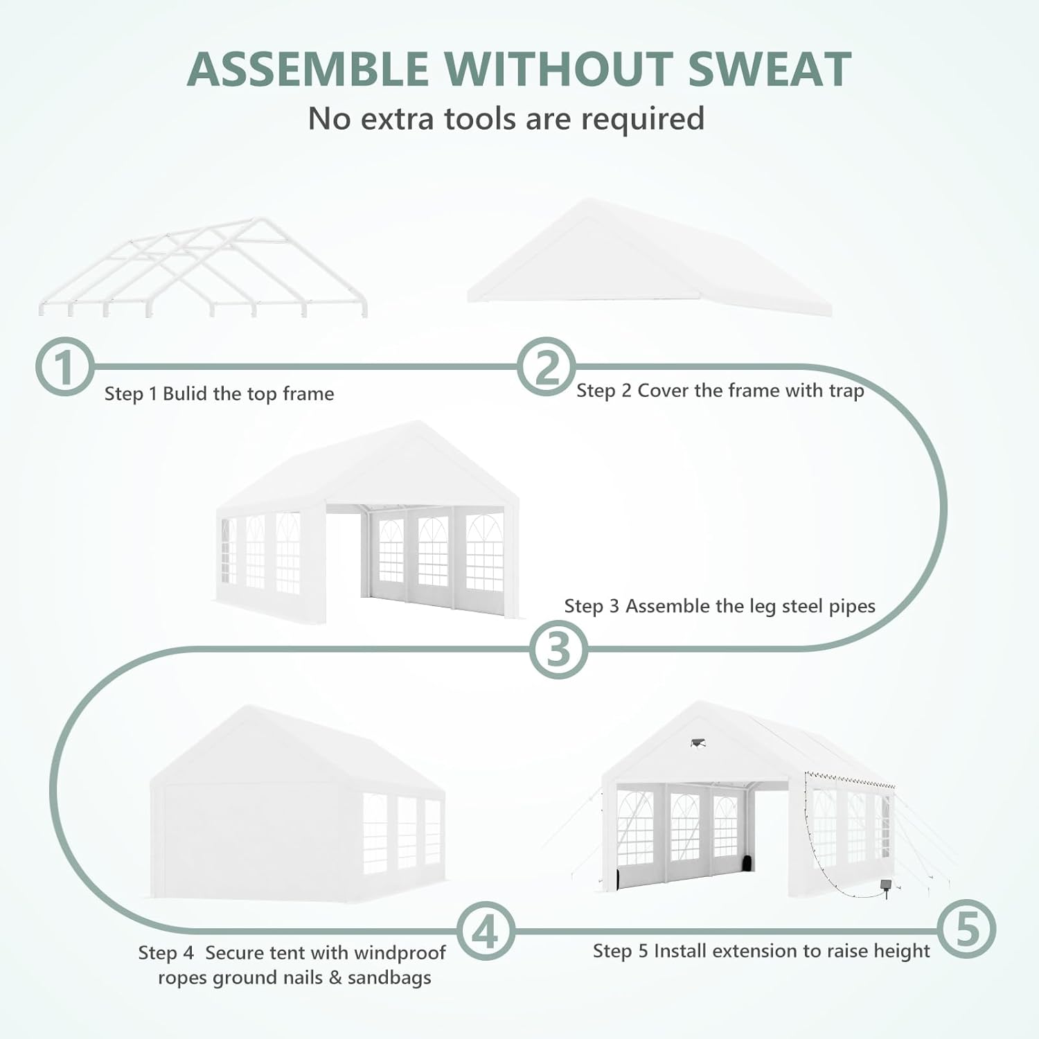 - 【Easy Assembly】: With numbered parts, clear instructions, and simple connection methods, our carport canopy tent is quick to set up and take down—no extra tools needed.