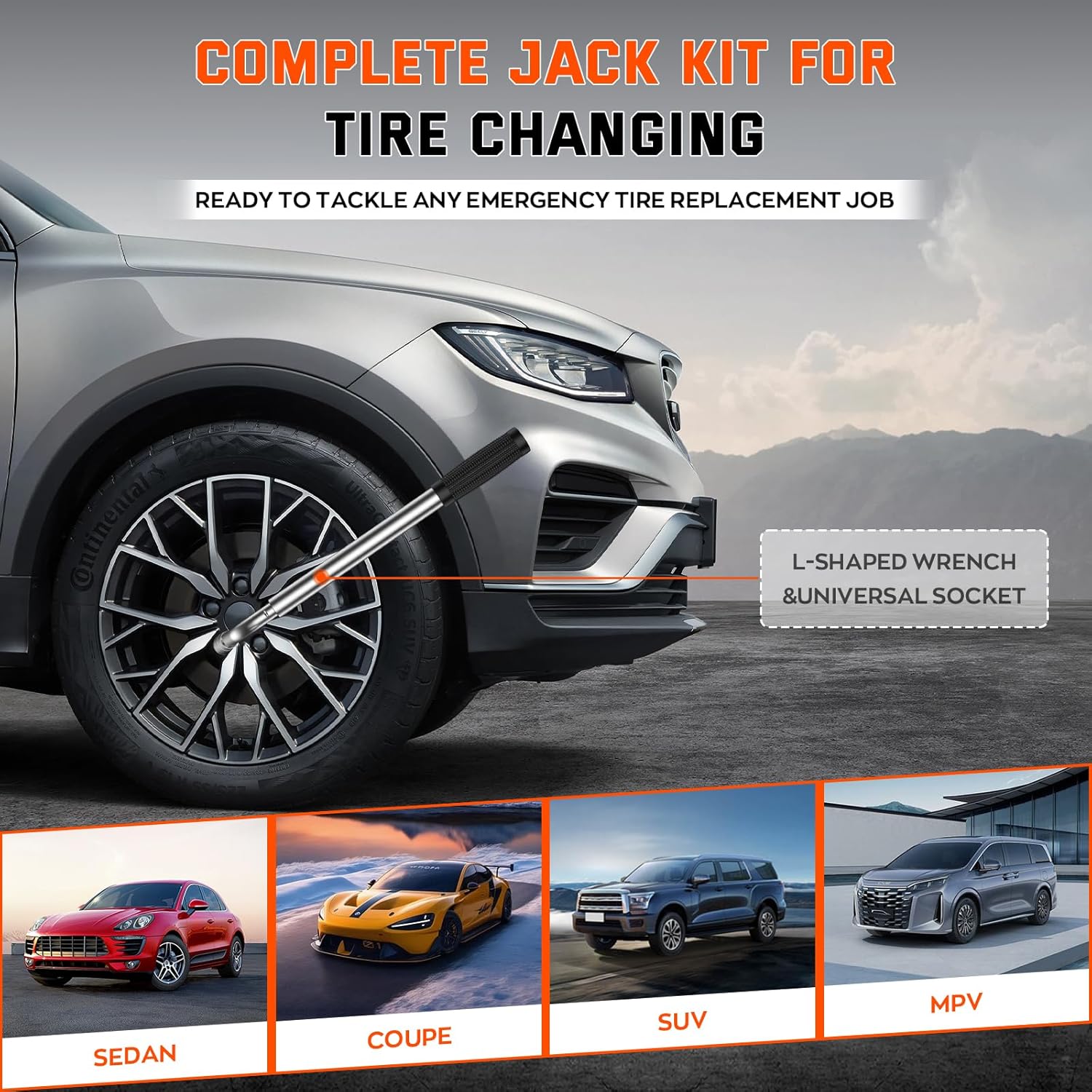 - 👍【Universal Car Emergency Kit】This car jack kit is universally compatible with cars, SUVs, MPVs, and other vehicles. It is perfect for emergency situations where you need to change a flat tire, remove a stuck wheel, or perform other vehicle repairs.