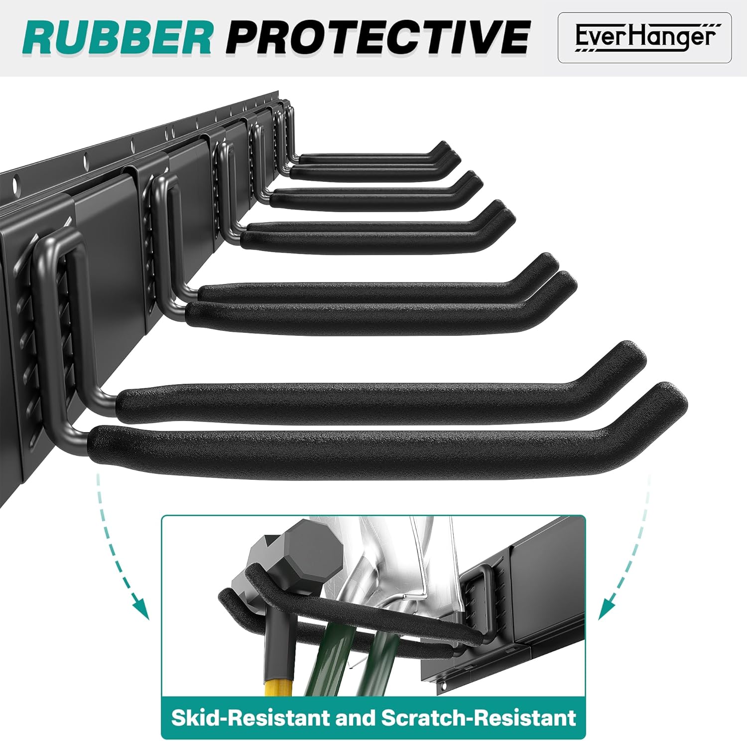 EVERHANGER Garage Tool Storage Organizer, Wall Mount Garden Tool Rack Organization, Heavy Duty Folding Chair Hangers with 12 Adjustable Hooks, Max Load 900lb, 96inch