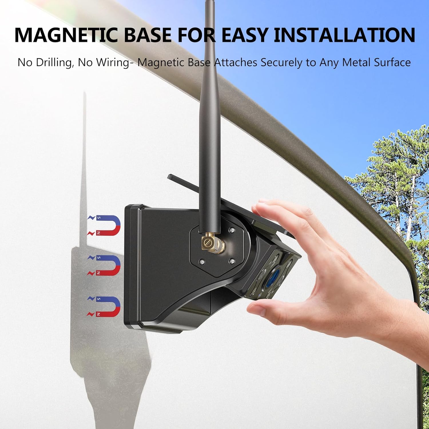 - 1 Minute DIY Setup: No Drilling, No Wiring! Simply plug into the cigarette lighter to power the 7 inch Touchscreen Full HD monitor, and easily attach the magnetic wireless backup camera to any metal surface of your vehicle. No need to worry about it falling off while driving. Install and remove as you like.