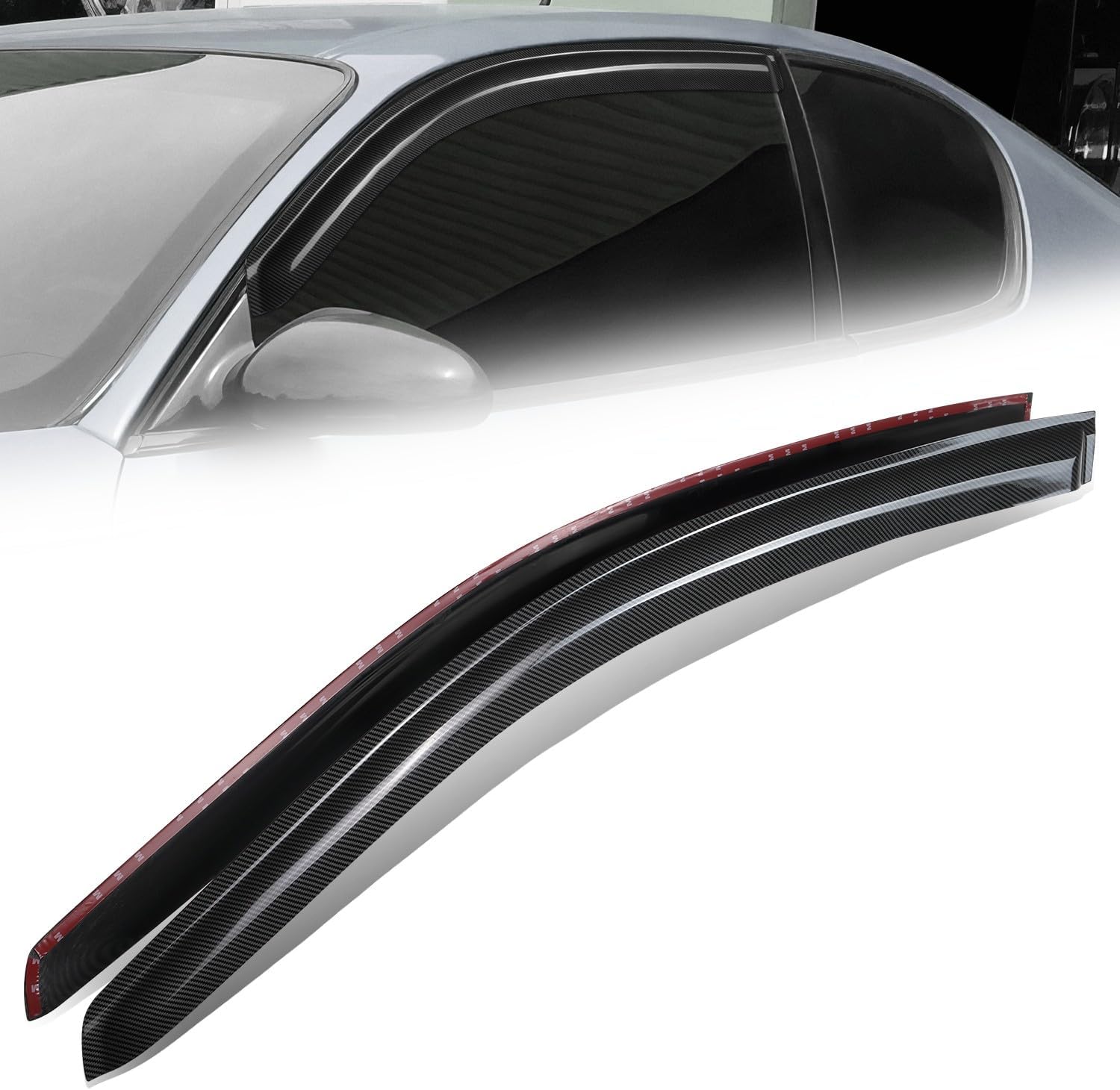 Auto Dynasty 2Pcs Carbon Fiber Pattern Window Visors Compatible with 2000-2007 Chevy Monte Carlo, Tape-On Front Window Deflectors Rain Guards Side Vent Shade, Glossy Black