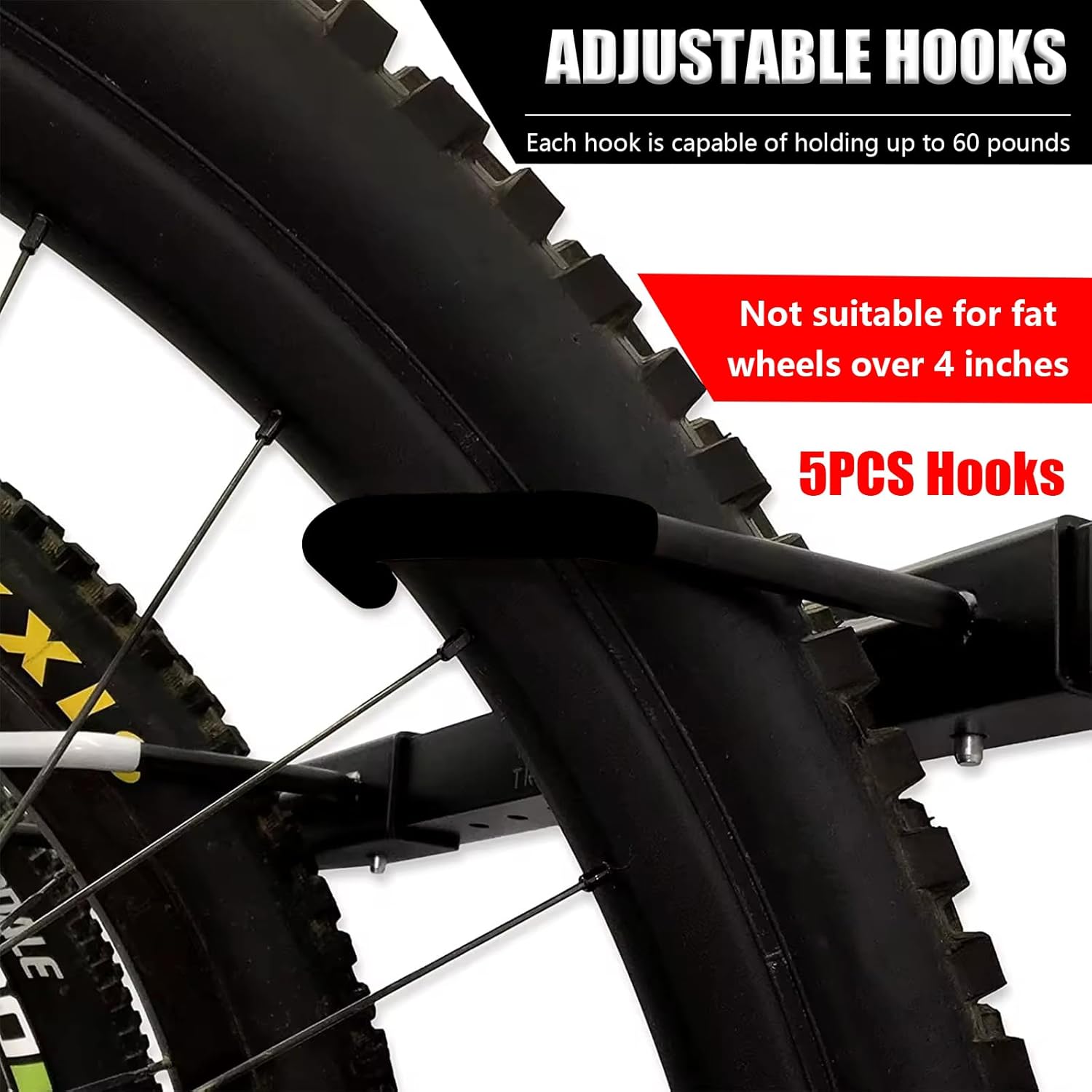 - 🚲【FREE-STANDING AND MULTI-BIKES RACK】 Designed to hold up to 5 bikes upright, just stagger your 5 bikes head to tail in the rack. perfect for storing road bikes, mountain bikes, hybrid bikes, adult bikes, kid bikes, etc.