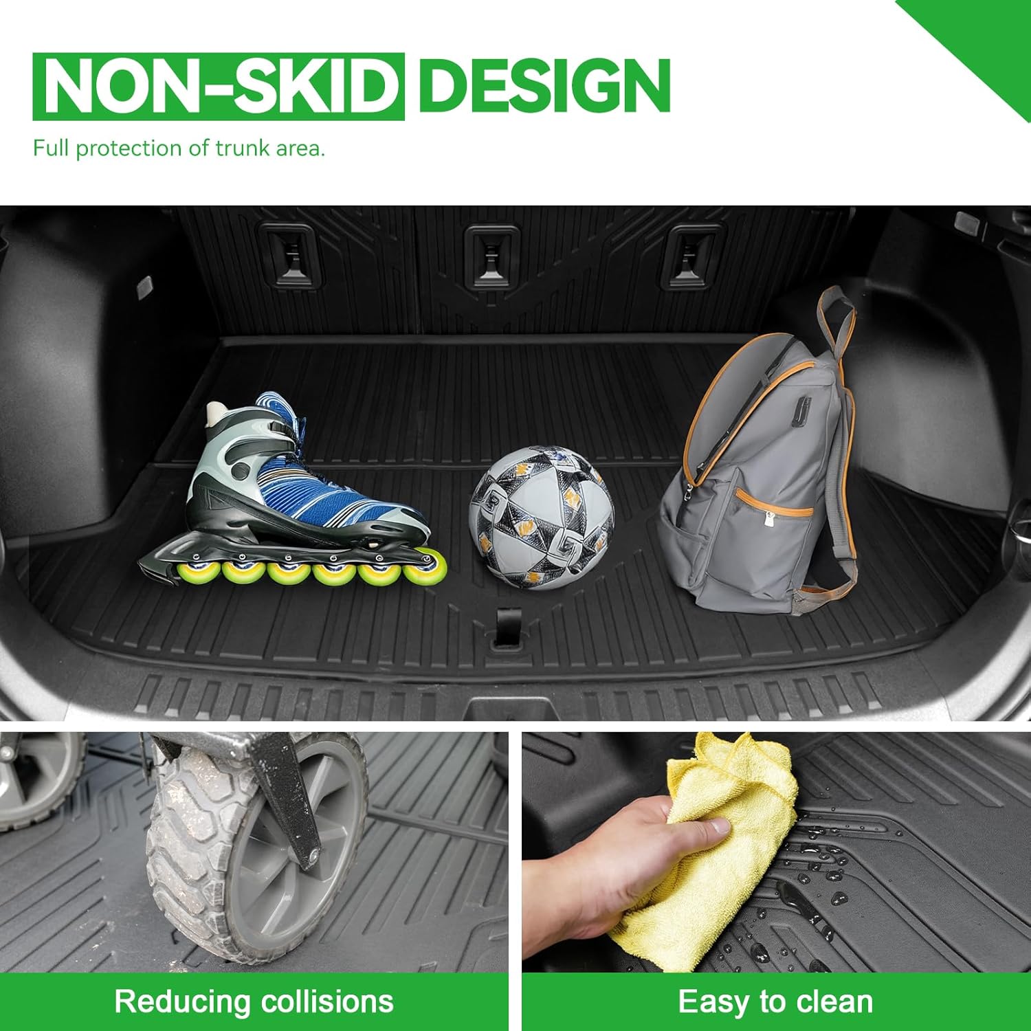 - [Anti Slip Design]: The deeply sculpted channels and raised edge to ensure a firm hold in place. This provides a stable surface for passengers and cargo, improving safety and convenience