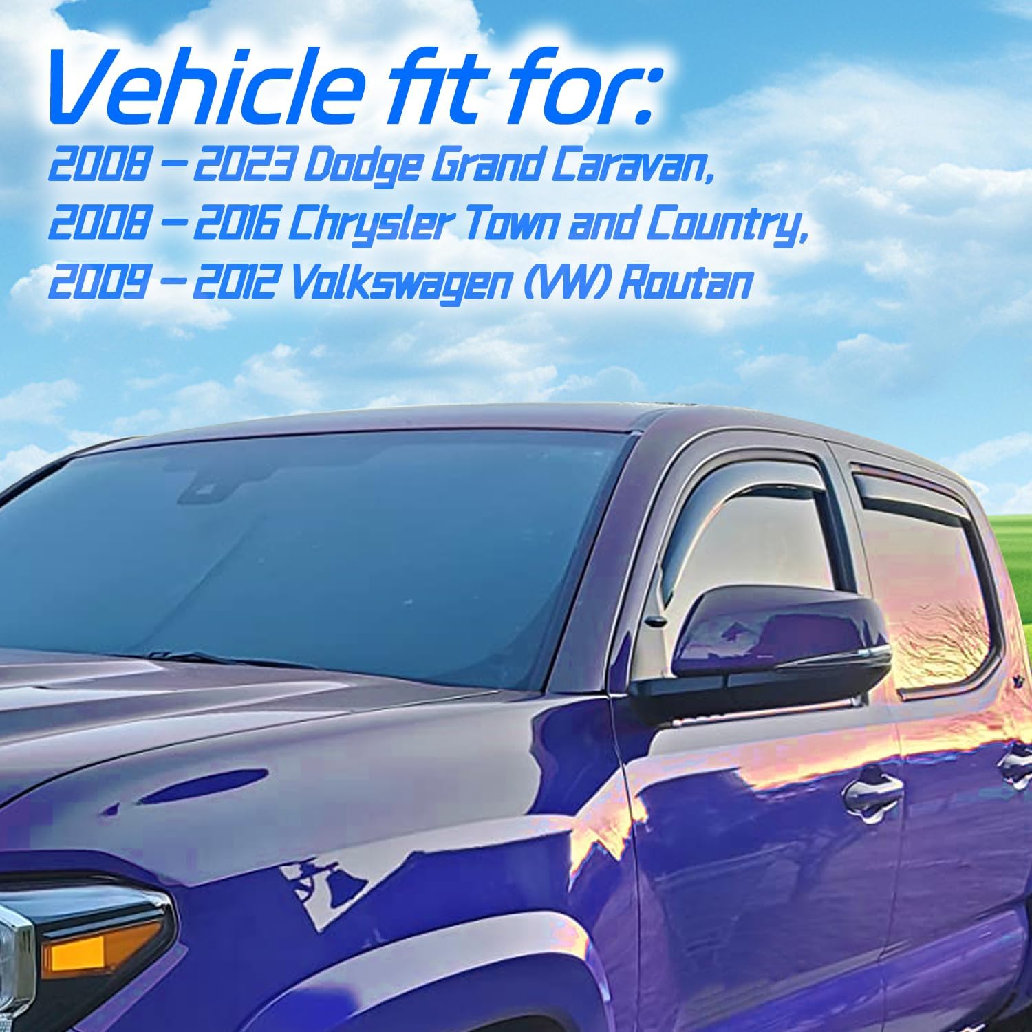 - ăVehicles FitmentsăCHYKORLA Window vent visors CUSTOM FIT only for Dodge Grand Caravan 2008-2023, Chrysler Town and Country 2008-2016, Volkswagen (VW) Routan 2009-2012