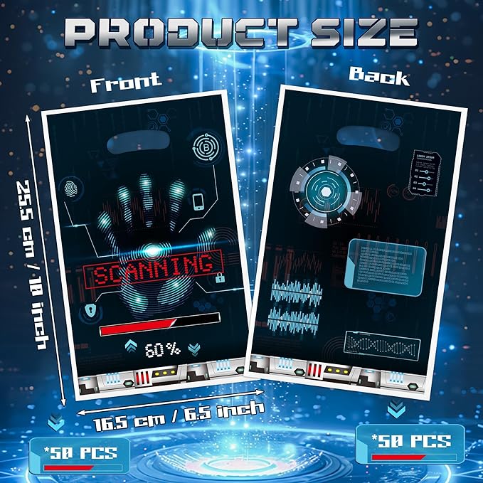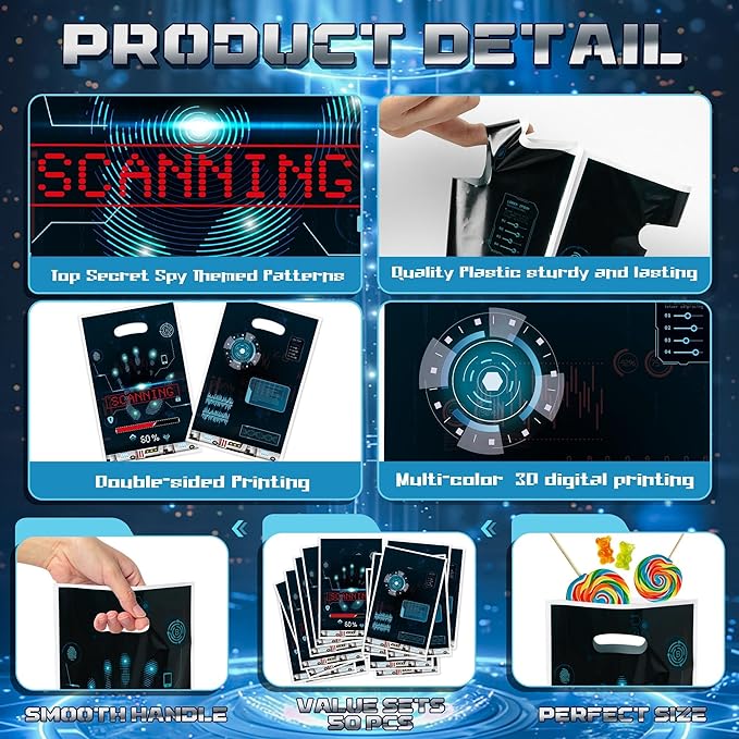 - SUITABLE SIZE: Each secret agent plastic gift bag measures approximately 6.4 x 10.1 inches (16 x 26 cm). Perfect for party favors or small gifts, you can use them to hold cookies, candies, cookies, chocolates, cakes, prizes, crafts, and a variety of snacks or gifts for friends and family. Pair these candy bags with your birthday party supplies for an eye-catching atmosphere.