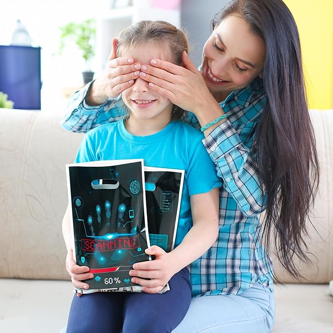- RELIABLE PLASTIC: Our top secret spy party gift bags are made of reliable quality PE, sturdy and reusable, with smooth surface, won't cut your kids' hands. The black spy party treat bags are also designed with hollowed out carrying handles for easy carrying. In addition, you can store them folded for your next party.