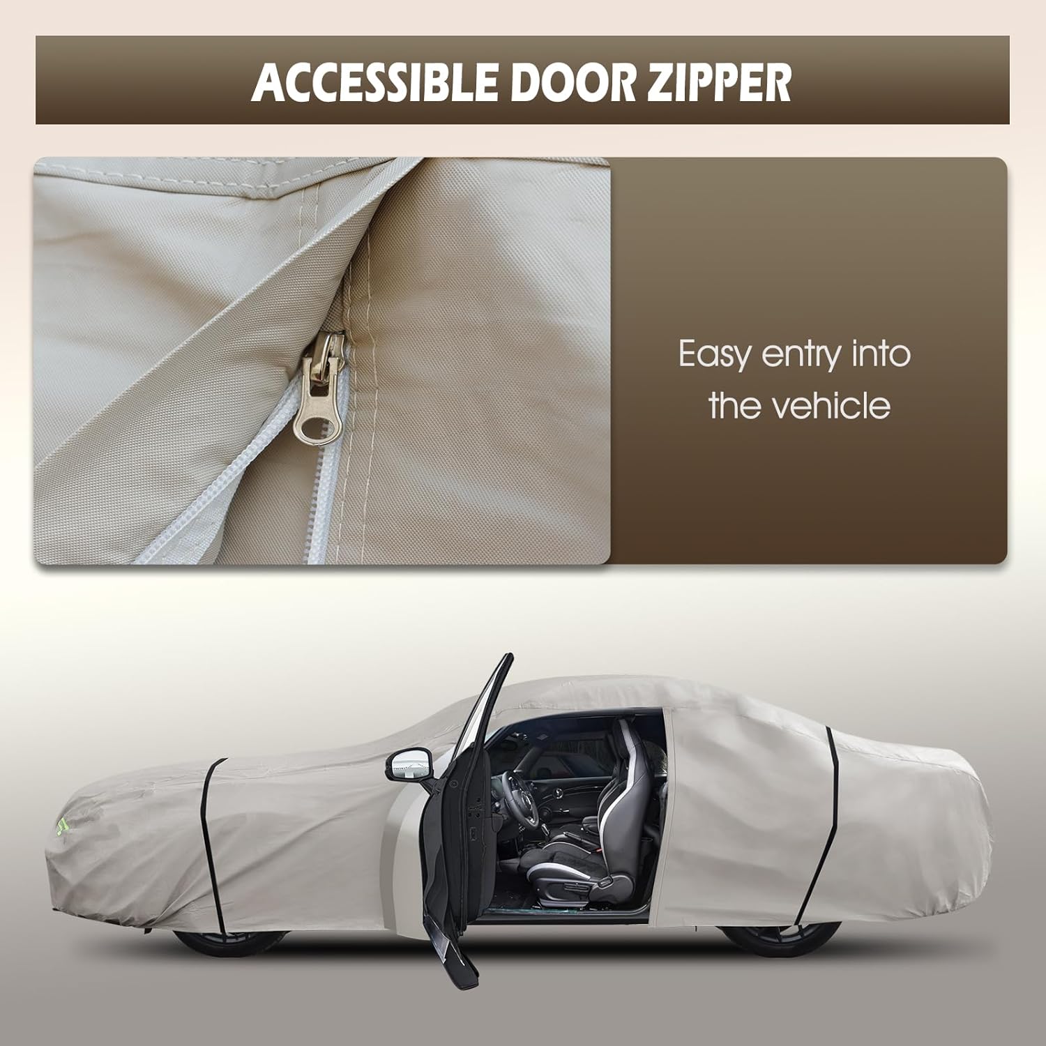 Migaven 6 Layers Car Cover Custom Fit for Ford Mustang 1994-2025, for Chevy Camaro 2010-2025, Waterproof Full Exterior Cover Rain Sun Protection with Door Zipper