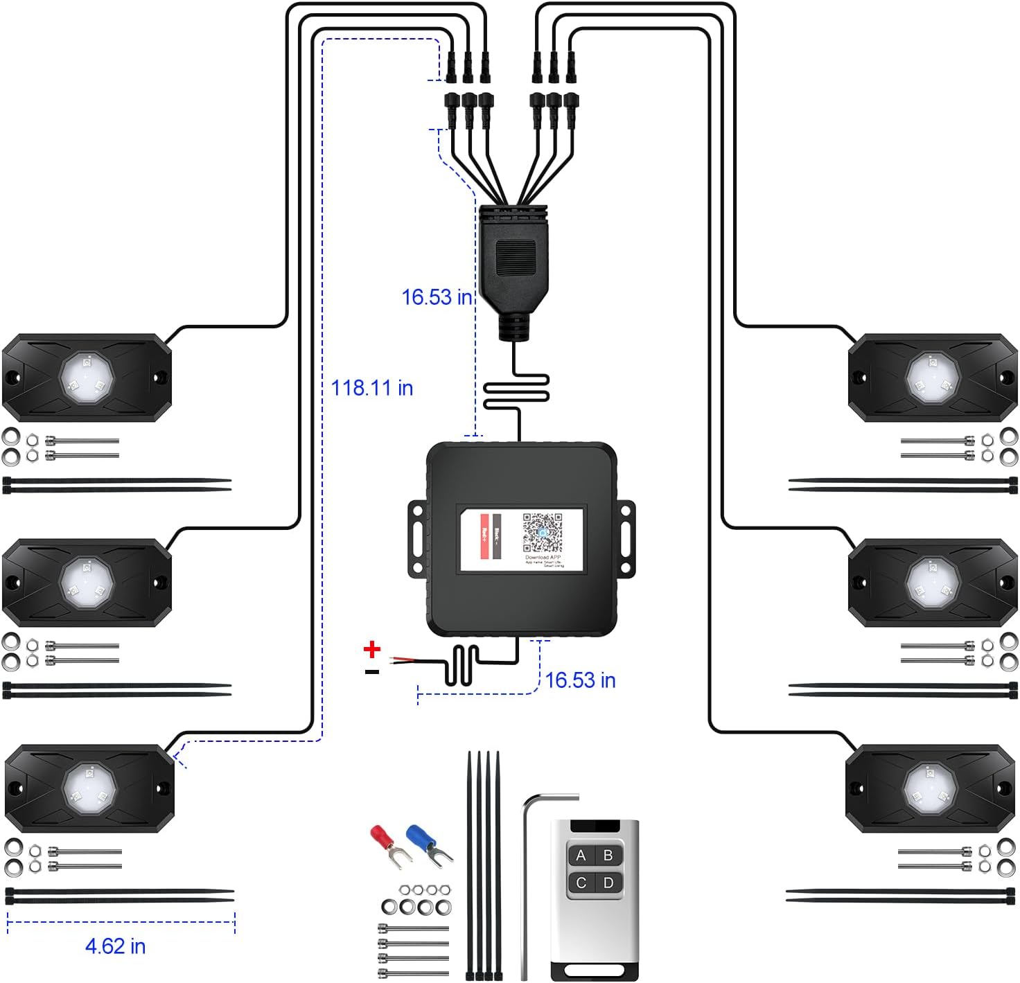 - ๐๐ฅ๐ฎ๐ -๐๐ง๐-๐๐ฅ๐๐ฒ ๐๐ง๐ฌ๐ญ๐๐ฅ๐ฅ๐๐ญ๐ข๐จ๐ง: The LED rock lights for UTV adopts a plug-and-play design with a rubber cap to securely lock the connection, eliminating worries about disconnection from pulling. The pins are perfectly matched, so you donโt have to worry about damaging them during connection