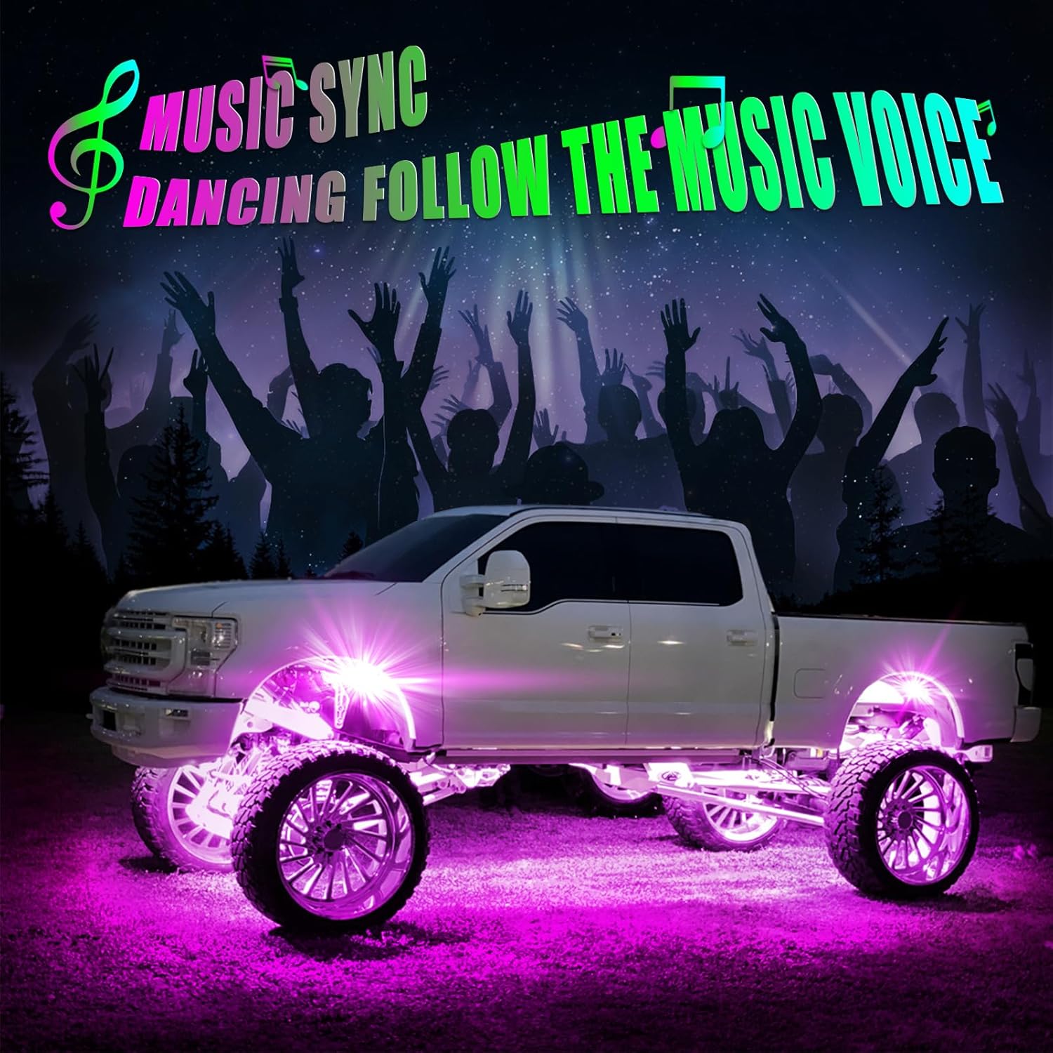 YiLaie RGB LED Rock Lights Kit, 6 Pods Underglow Multicolor Neon Light with App/RF Remote Control, Flashing Music Mode, Multicolor Wheel Well Light for Trucks ATV UTV RZR SUV Golf