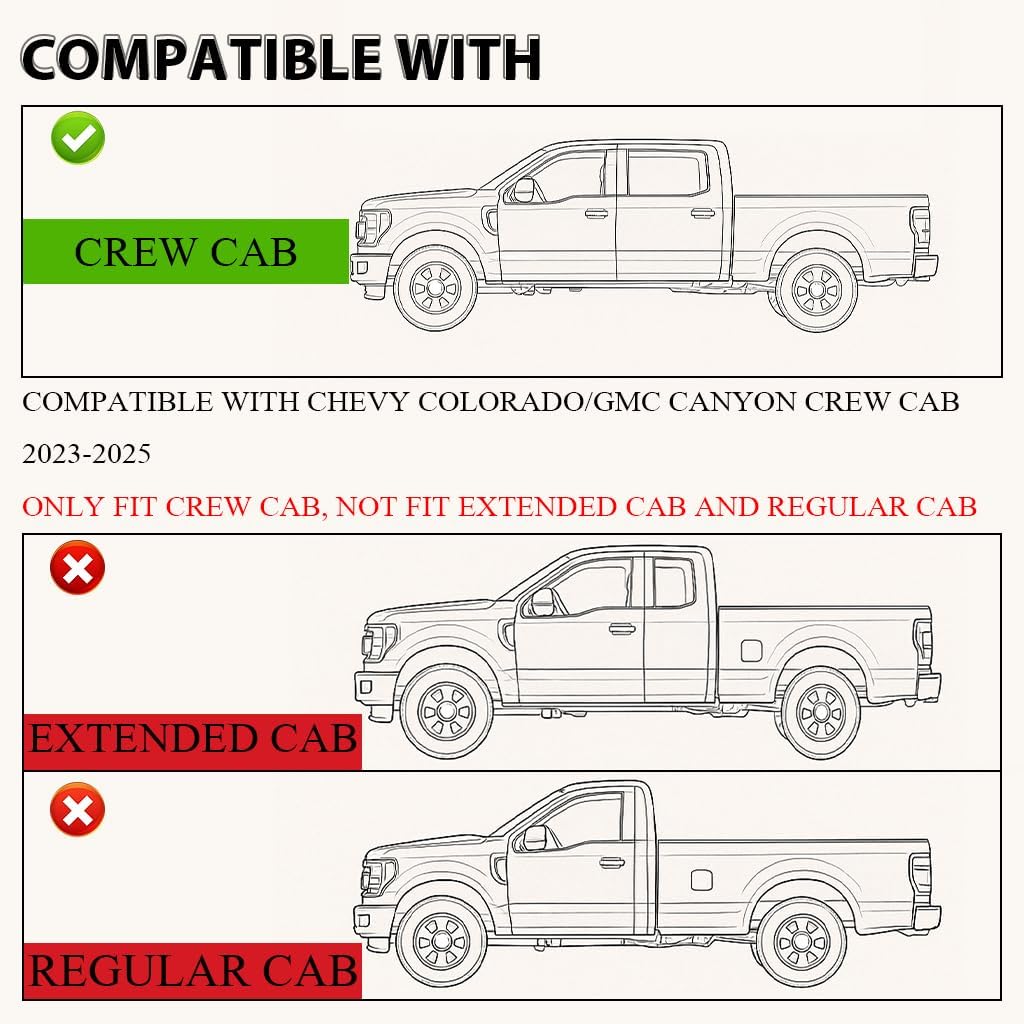 - COMPATIBILITY: Compatible with Chevy Colorado Crew Cab 2023-2025,Compatible with GMC Canyon Crew Cab 2023-2025