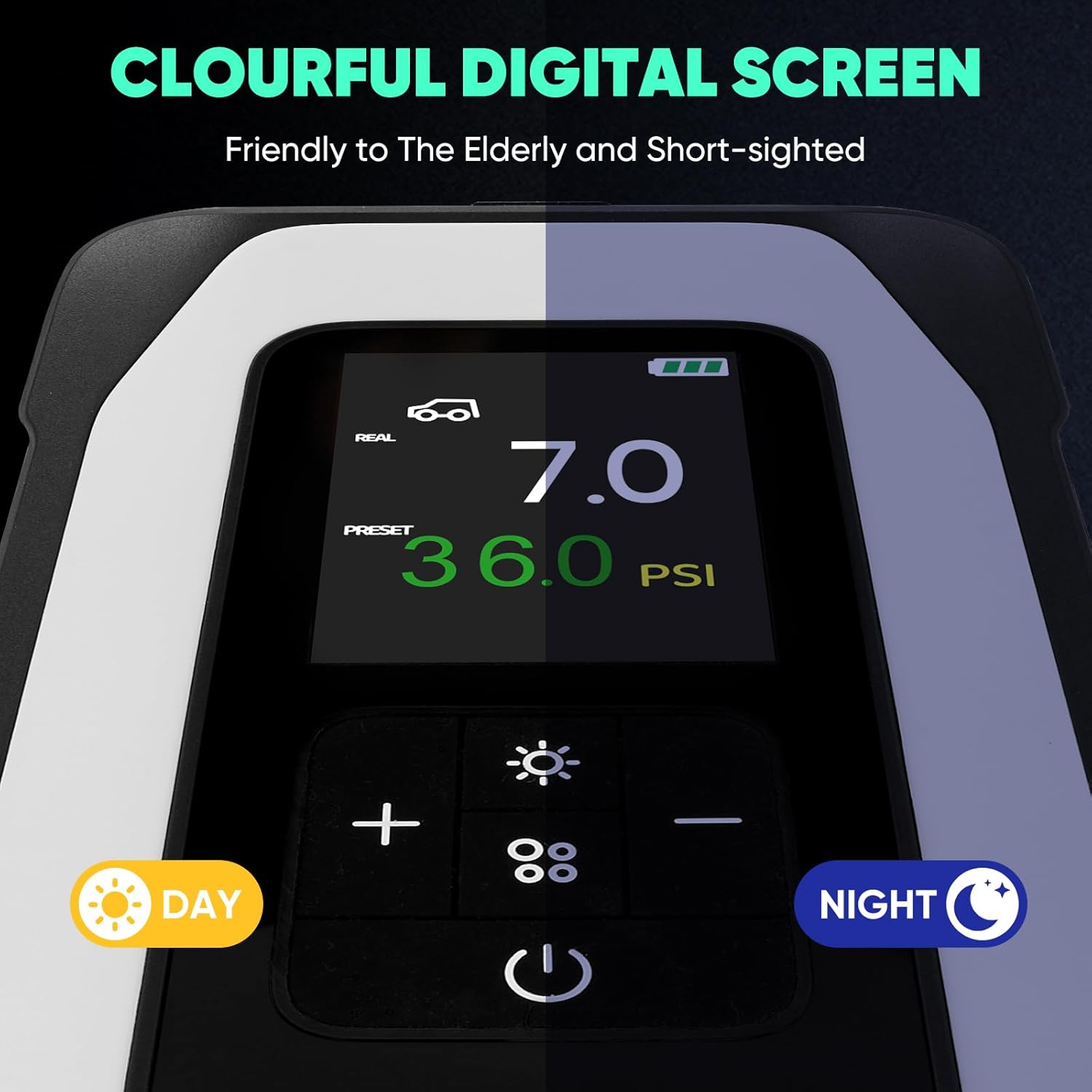 - 【Colorful Screen & Auto Stop】The Butiyou BY01 features a colorful digital pressure gauge screen for easy readings, especially easy to read in bright sunlight . Select your mode and preset pressure, connect the hose, and the inflator will auto-stop once the desired pressure is reached.