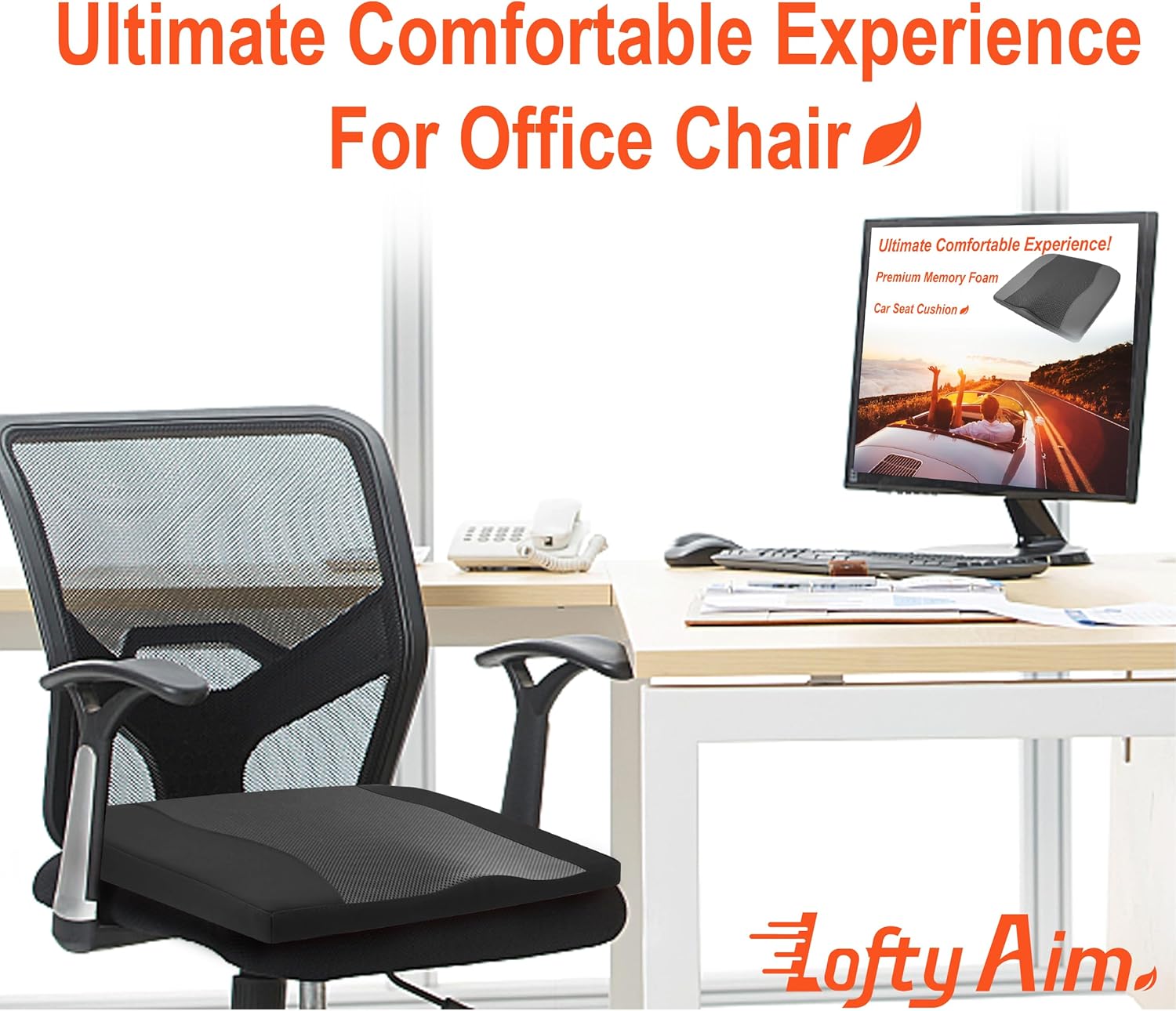 Car Seat Cushion, Comfort Memory Foam Car Cushions for Driving - Sciatica & Lower Back Pain Relief, Driver Seat Pillow for Auto, Office Chair, Wheelchair - Obsidian Speck Black