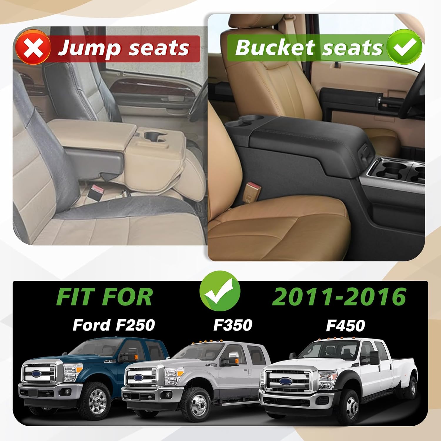 Muslogy Center Console Armrest Cover Compatible with Ford F250 F350 F450 2011-2016 Super Duty Comfort Armrest Pad Arm Rest Cushion Vegan Leather Protector Regular Thick(Bucket Seat ONLY)