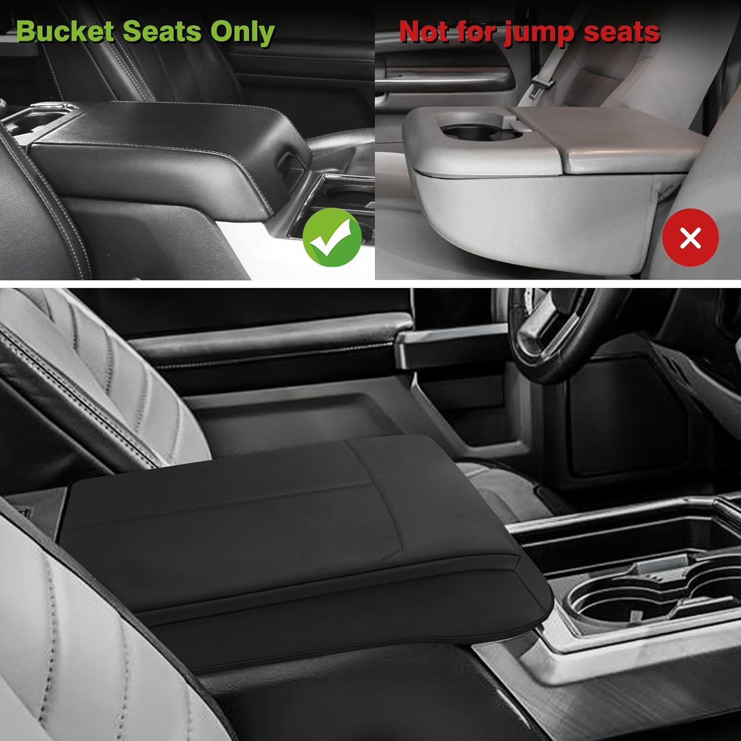 Muslogy Center Console Armrest Cover Compatible with Ford F250 F350 F450 2017-2022 Super Duty Comfort Armrest Pad Arm Rest Cushion Vegan Leather Protector 1-Inch Extra Thick(Bucket Seat ONLY)