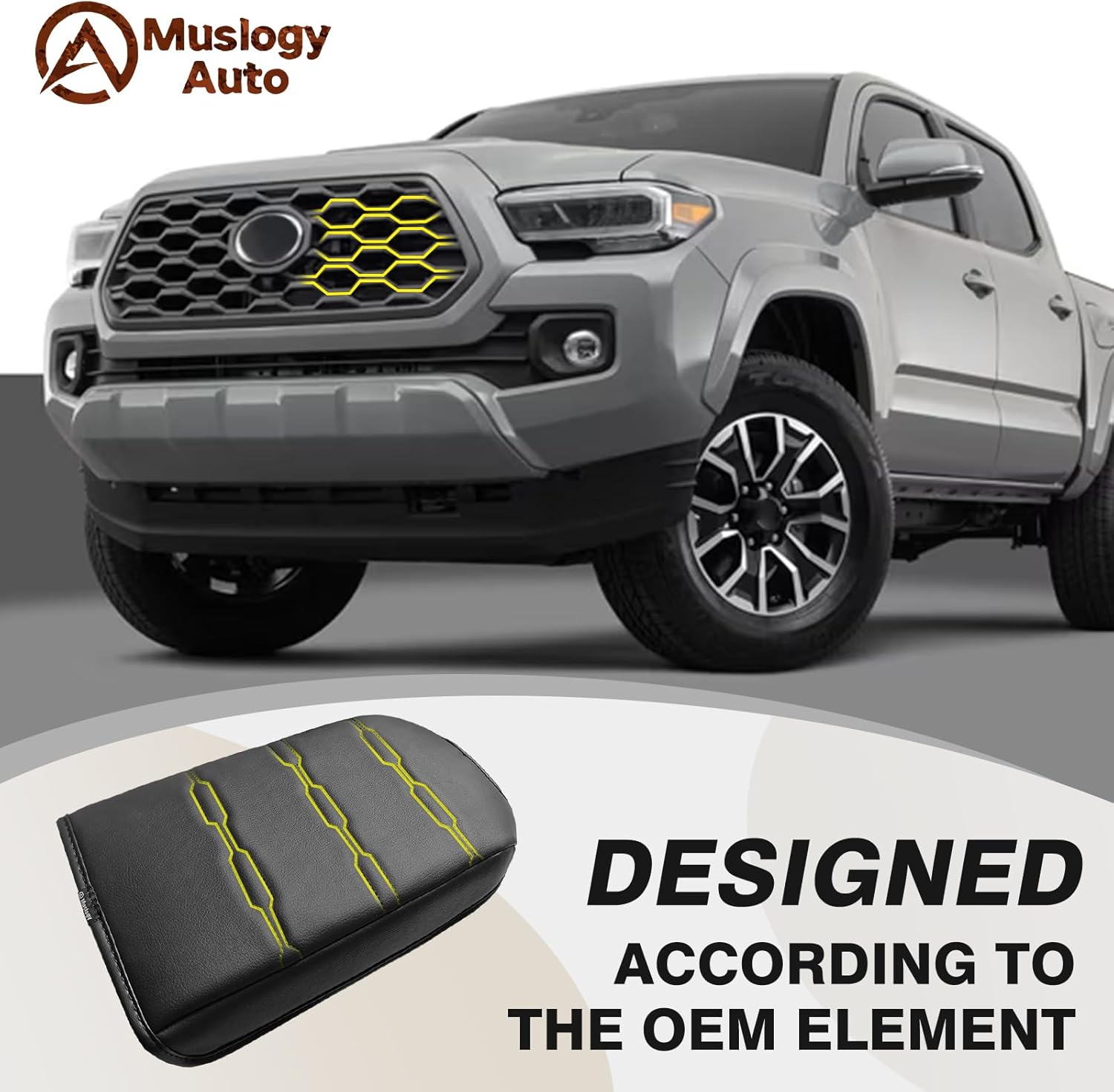 Muslogy Center Console Armrest Cover Compatible with Toyota Tacoma 2016-2023 Comfort Armrest Pad Arm Rest Cushion Vegan Leather Protector Regular Thick