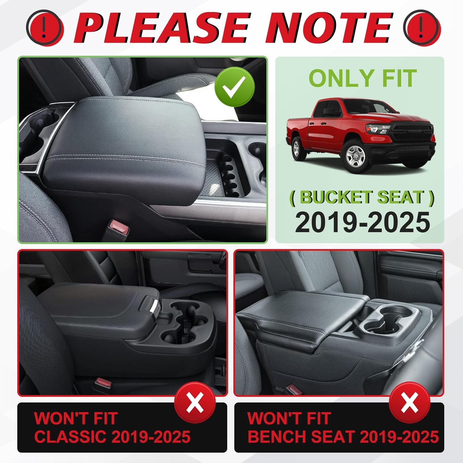 - Perfect Fitment: Designed according to 3D laser scan data to make sure it fits your 2019-2024 Dodge Ram 1500 2500 3500. Designed according to the OEM element. [PLEASE NOTE: WON'T FIT BENCH SEAT and CLASSIC/LIMITED/LARAMIE]