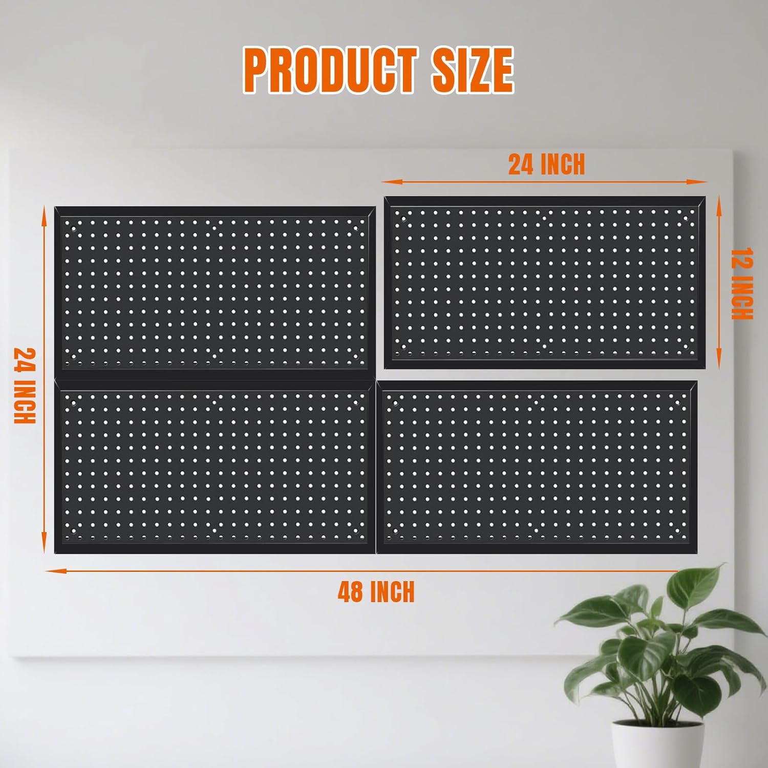 48x24 Inch Metal Pegboard Wall Organizer, Black Pegboard Panels Tool Organizer Kit with Accessories Hooks and Bins, Peg Board Utility Tool Storage for Garage Workbench Shed