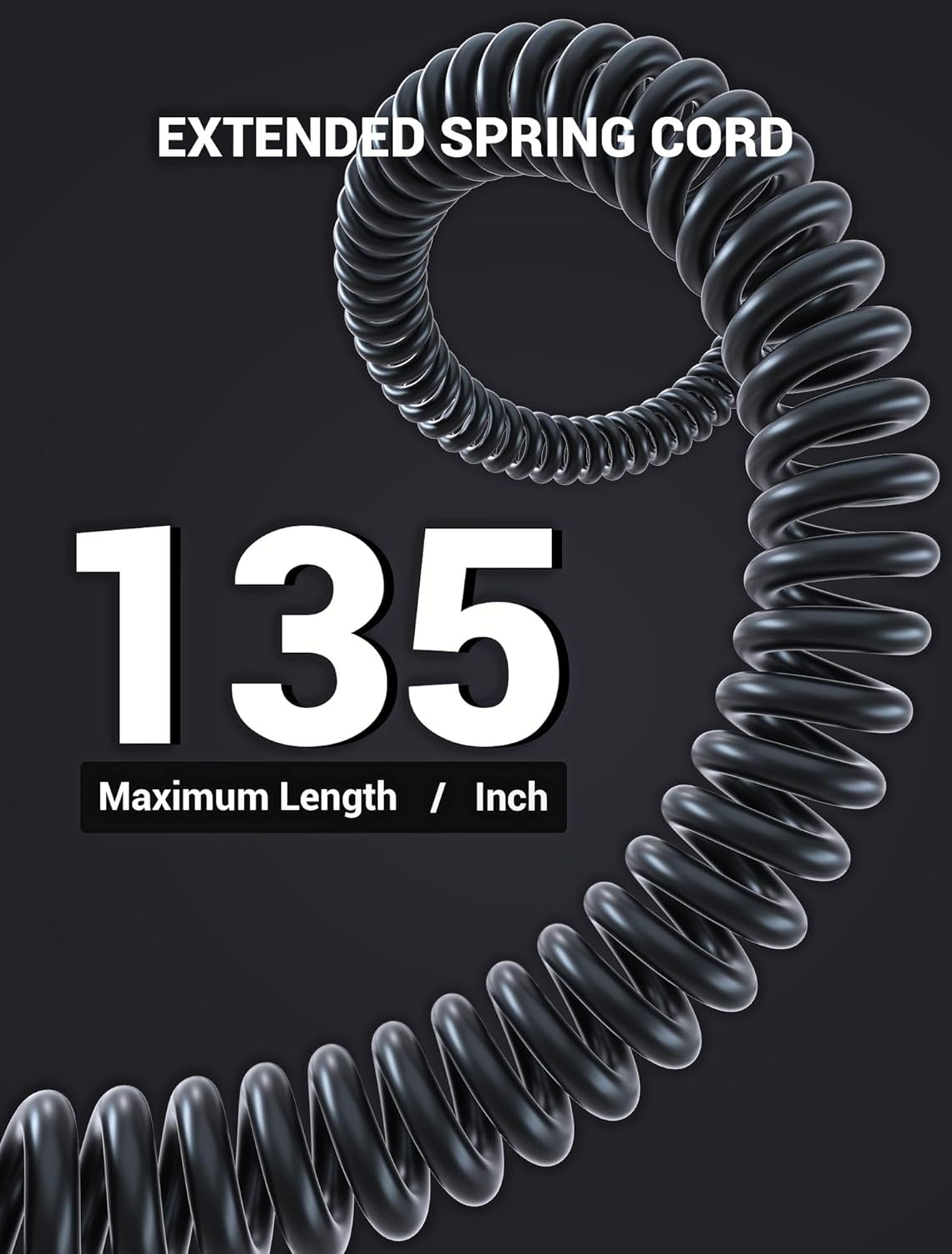 - 【135Inch PU Spring Cord】 : Portable 135 inch long enough PU spring wire cord, tail equipped with anti-kinking spring; And large size alligator clip for easy and one hand operation.