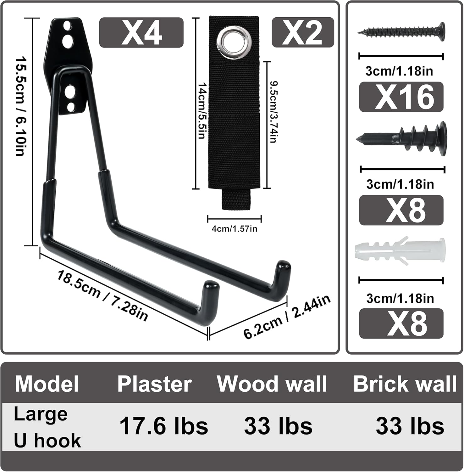 - DURABLE HEAVY-DUTY CONSTRUCTION - Built from reinforced iron tubing, these wall-mounted garage hooks offer superior strength and longevity. Perfect for smaller tools, hoses, and lightweight storage, ensuring a tidy and organized space