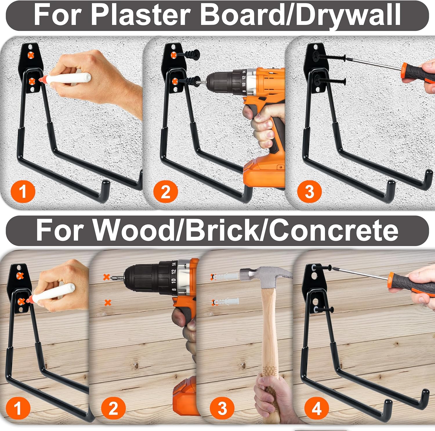 - RELIABLE WEIGHT SUPPORT - Built to hold small to medium-weight items without bending, these garage wall hooks are a sturdy and practical storage solution