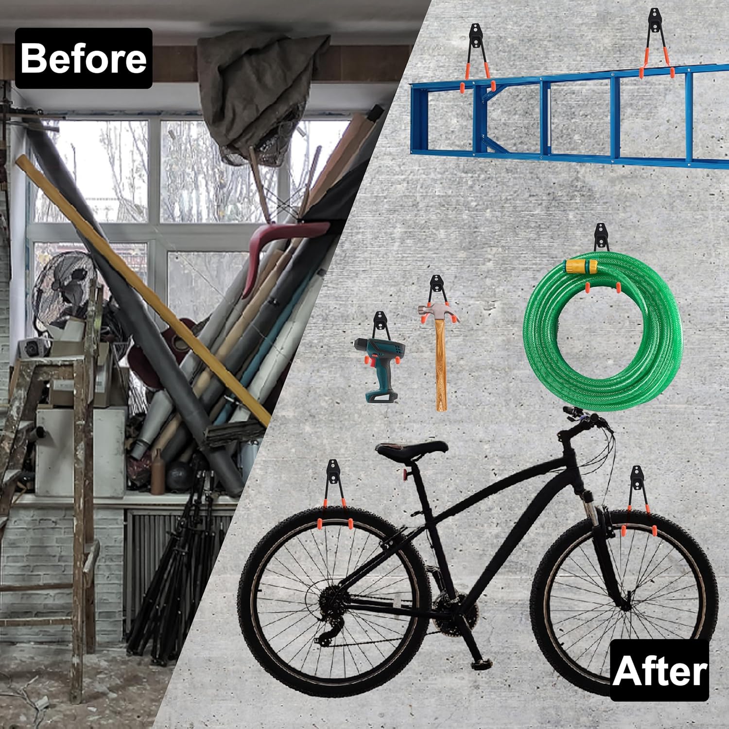 - SPACE-SAVING STORAGE HOOKS - Maximize garage, workshop, or basement storage by neatly hanging small ladders, power tools, extension cords, hoses, and more. Keep your space clean and free of clutter