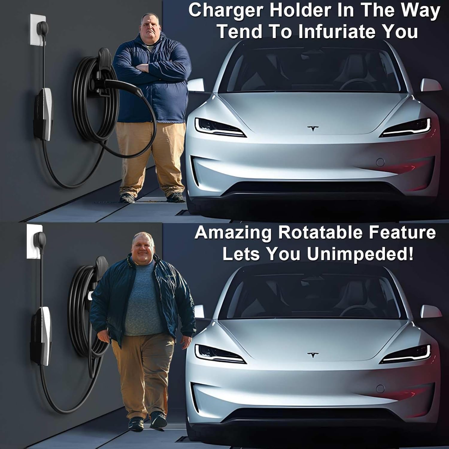 - 2025 Tesla Charger Holder: Compatible with Tesla model 3/model Y/model X/model S chargers. The AB Tesla charging cable holder is the perfect for hang your charging cables in a garage, especially suitable for narrow garages