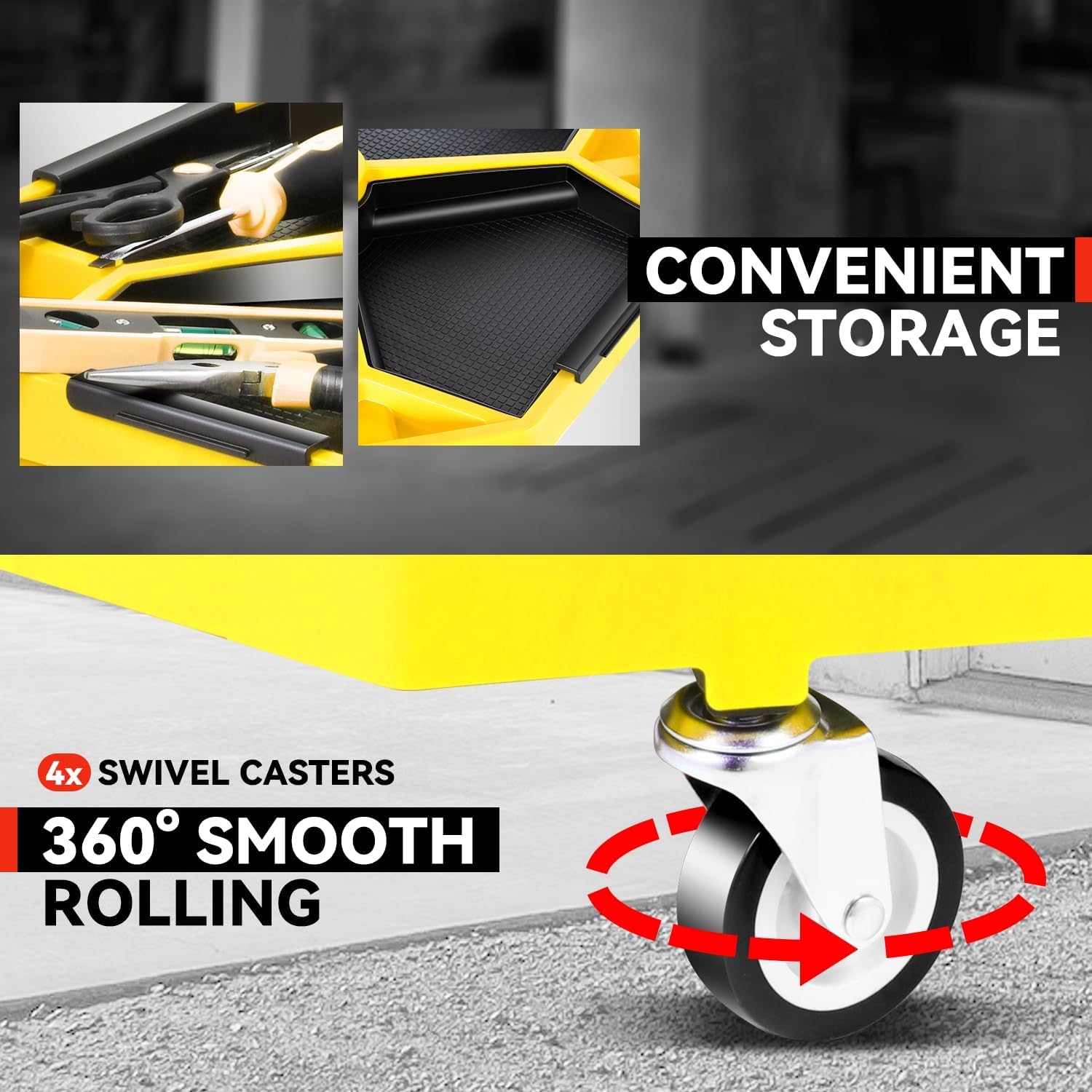 - 【Enhanced Mobility】Equipped with 4 swivel casters, this mechanic stool provides smooth and precise maneuverability around your garage, streamlining your work process.