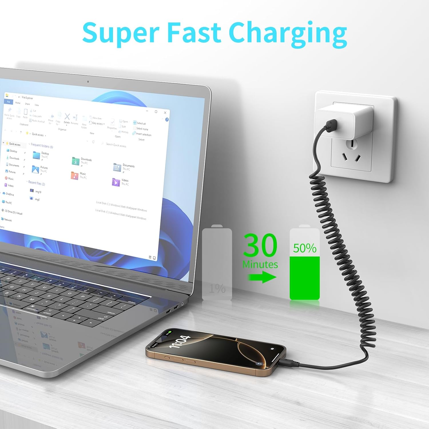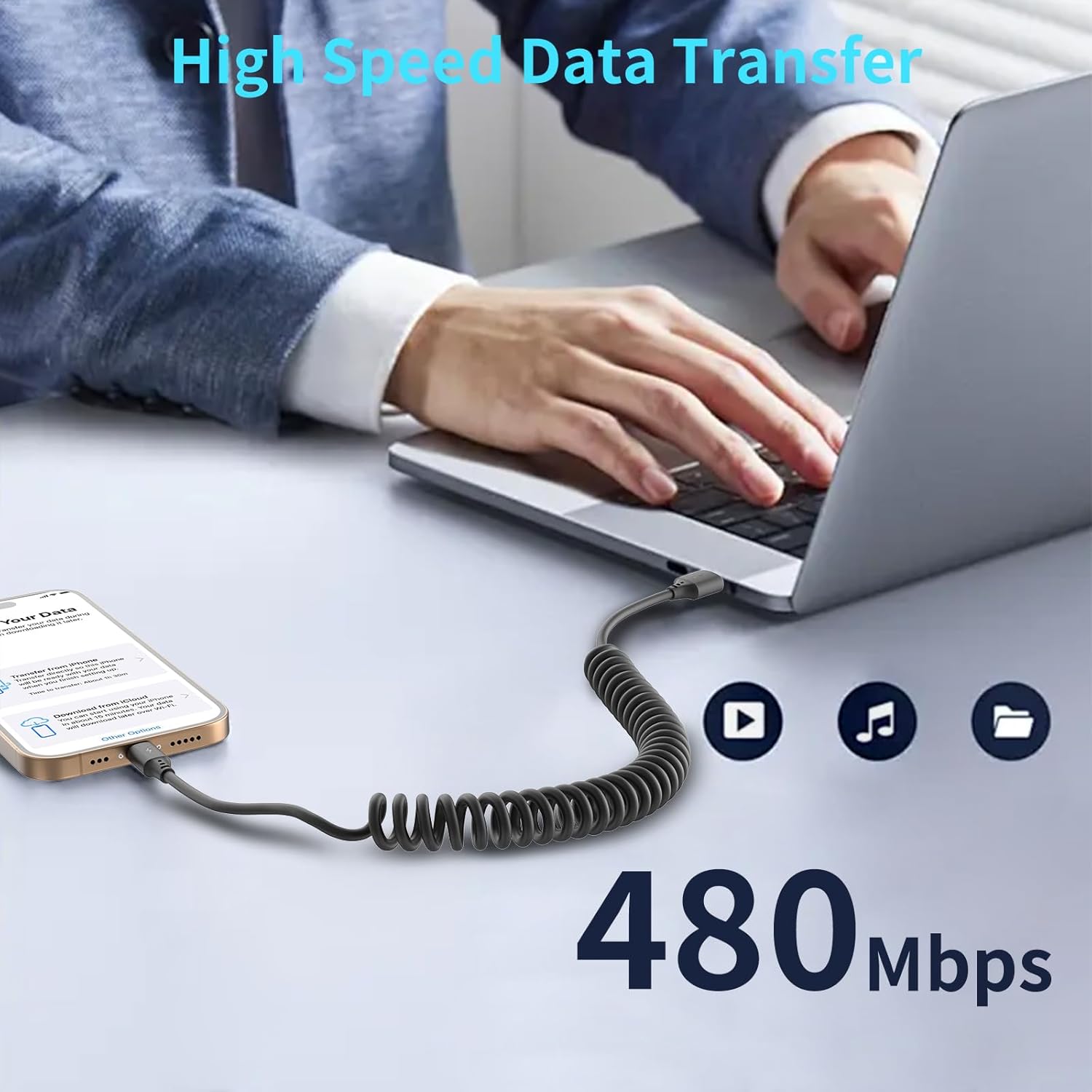 - Super Durable Type-C Cable: The coiled usb c cable uses high-quality PU material and spring structure design, effective resistance to pulling, twisting and bending in everyday use, extend the service life of retractable usb to usb c cable