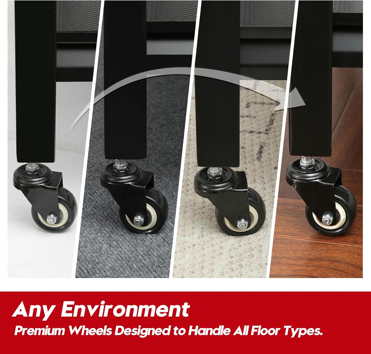 - Flexible and Slient Movement: With whisper-quiet operation and effortless pushing,this garage shelf with wheels revolutionizes your storage experience. The 360-degree swivel casters offer seamless turning of your equipment, making it a breeze to move around. Perfect for transporting and display pieces without a scratch or a sound. The built-in locking mechanism on each caster provides the ultimate convenience β move freely when you want, lock it firmly in place for stability and safety. This is the great garage shelving you've been searching for to bring order and ease to your space.