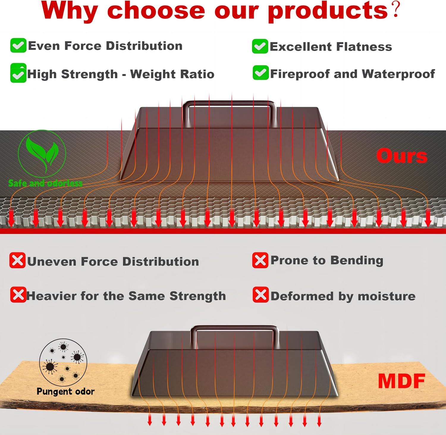 - Groundbreaking Design: Our garage shelves boast exclusive aluminum honeycomb panels. Different from traditional shelves that are easy to bending or deformation, the honeycomb pattern evenly distributes weight, enabling it to hold heavy items without sagging or bending. With their unique construction and high load-bearing capacity, these shelves are set to transform your garage organization.