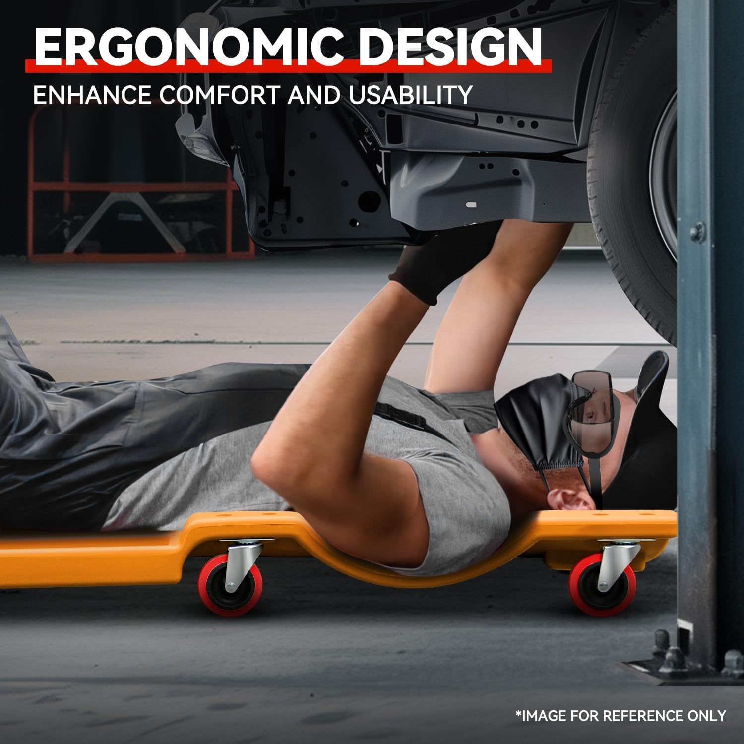 Auto Dynasty 36 Inches Mechanic Creeper, Automotive Garage Repair Low Profile Under Car Rolling Creeper with Padded Headrest, Plastic, Orange