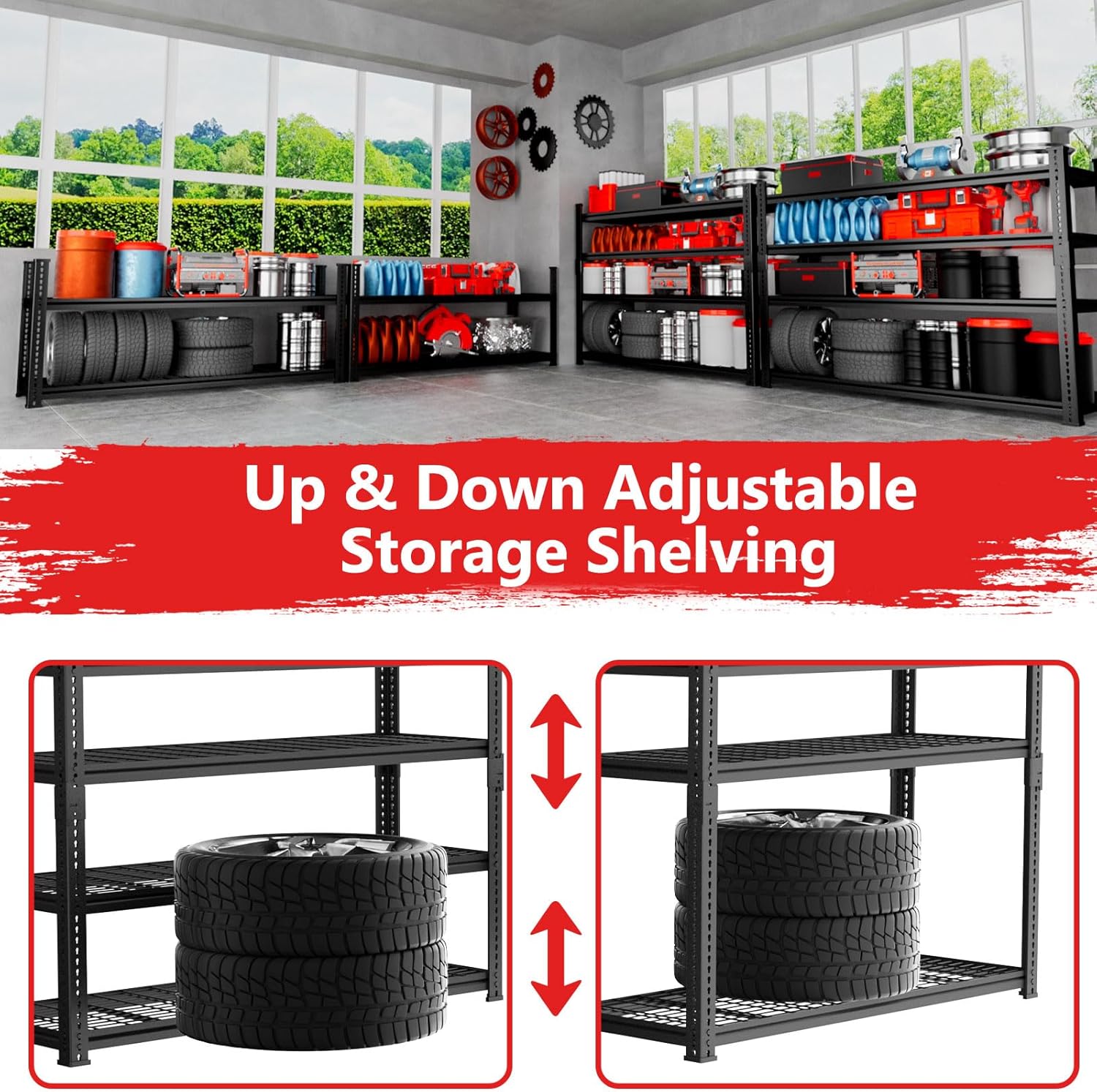 - 2640LBS Heavy Duty Capacity: MODCART's heavy-duty garage shelving is built with robust steel columns, supporting up to 660 lbs per shelf for a total of 2640 lbs. it offers reliable organization for your garage, kitchen, or laundry room