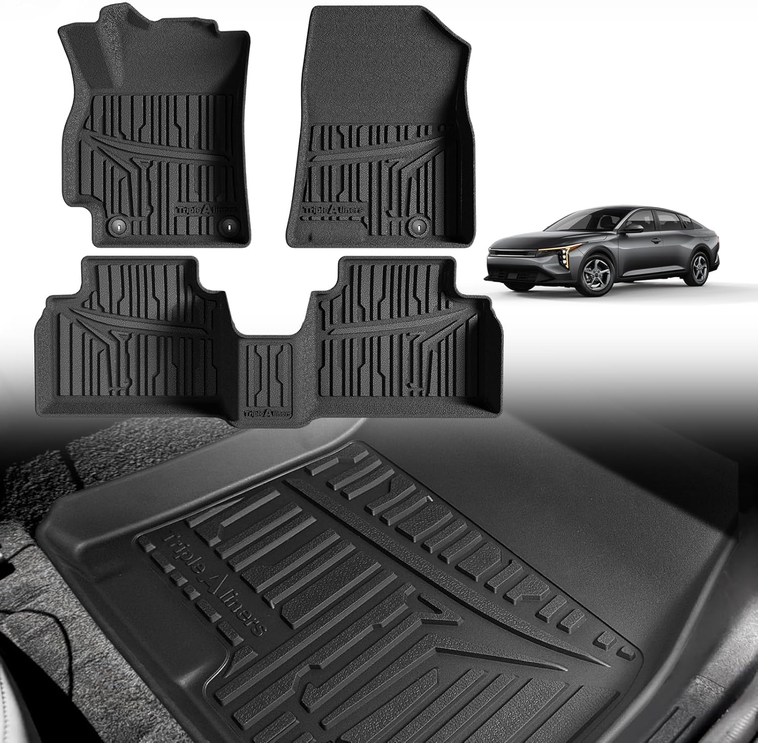 - TripleAliners All Weather Floor Mats Compatible with 2024 2025 KIA K4 Accessories 1st & 2nd Row Floor Liners TPE Full Coverage Protection Waterproof Car Floor Liners