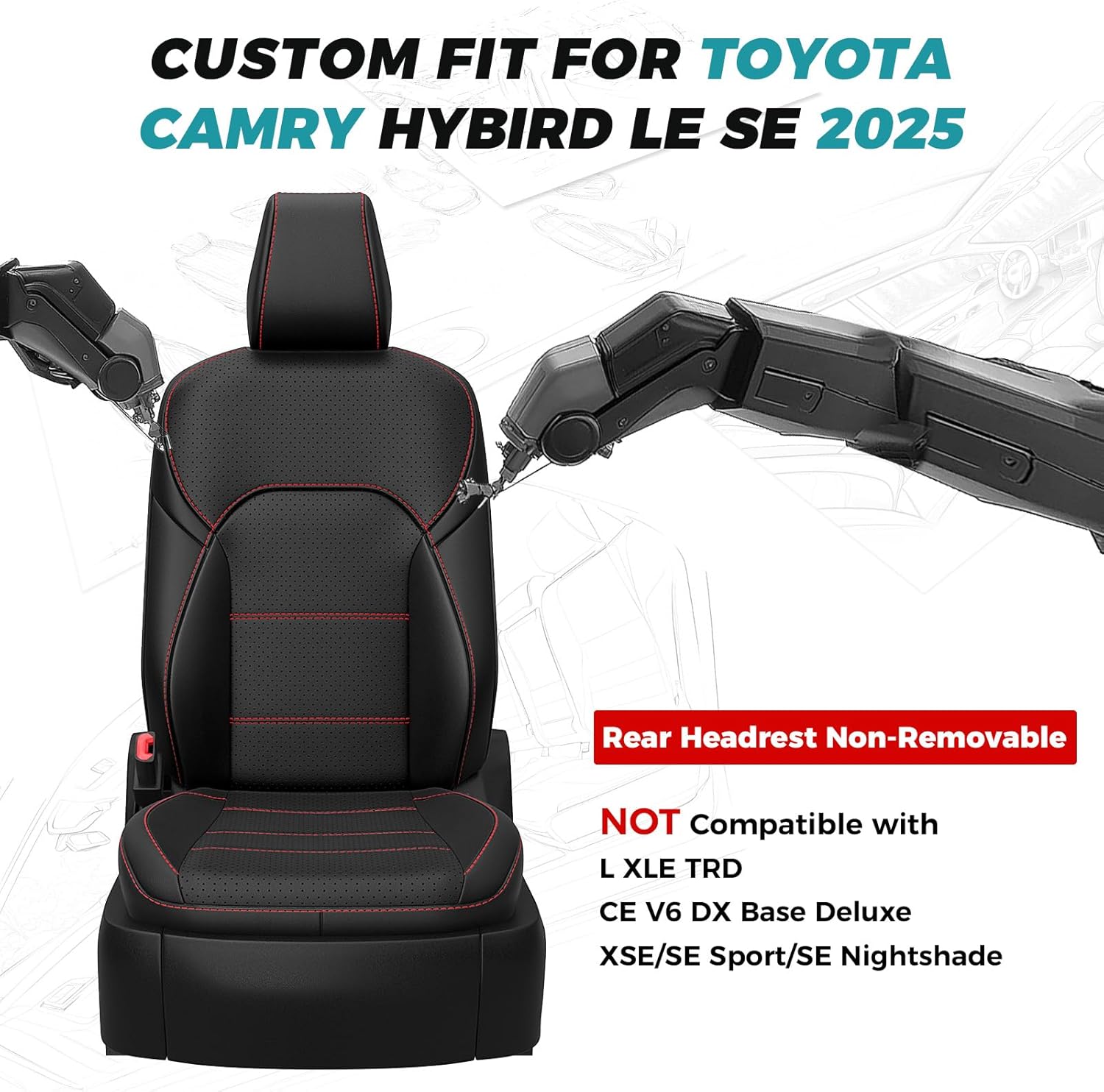 - ăCustom Car Seat Covers 1:1ă: Precisely cut and custom tailored to camry seat covers for a glove-like fit. Exclusively fit for Toyota Camry Seat Covers LE SE 2025.