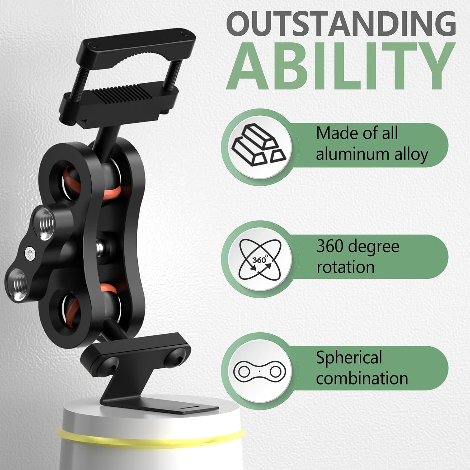 - Aluminum rearview mirror bracket has strong expandability, with two 1/4 screw holes at the handle that can be used to expand other devices.360 °rotating ball head design, flexible adjustment, ensuring the best viewing angle while driving.