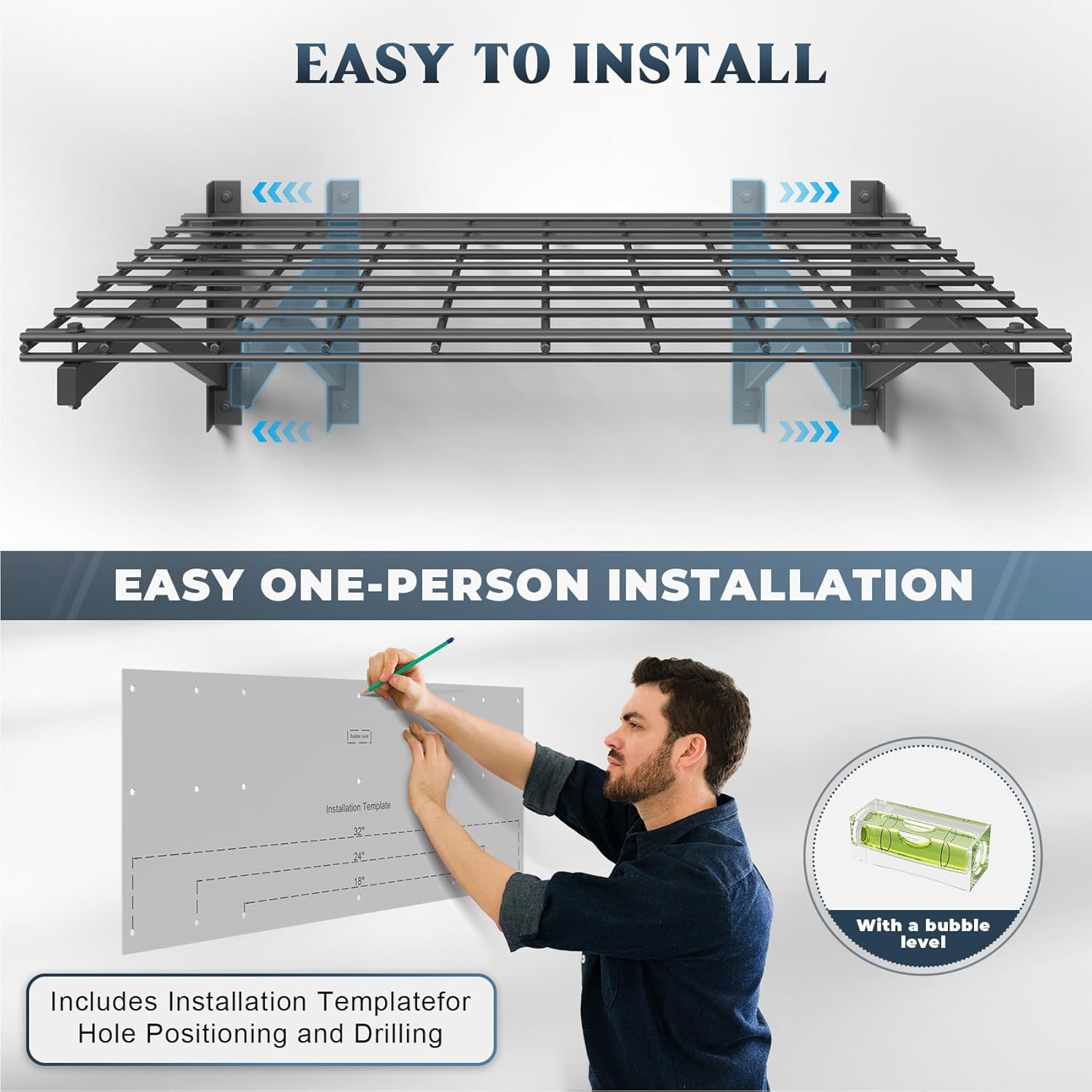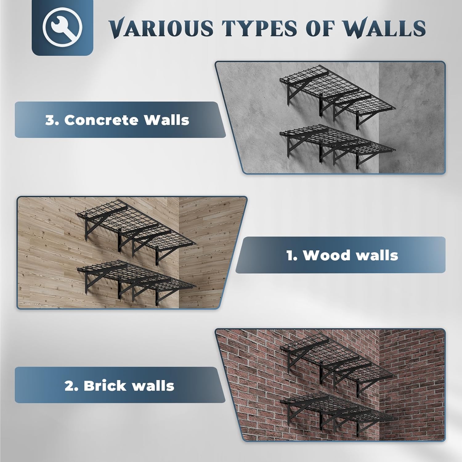 - 🔧【Effortless Modular Installation】- No drilling expertise required! Simply align the template, secure the brackets, and snap the grids into place. Compatible with concrete, wood, and brick walls (note: not for metal walls). Transform your cluttered garage into an organized space in under 30 minutes!