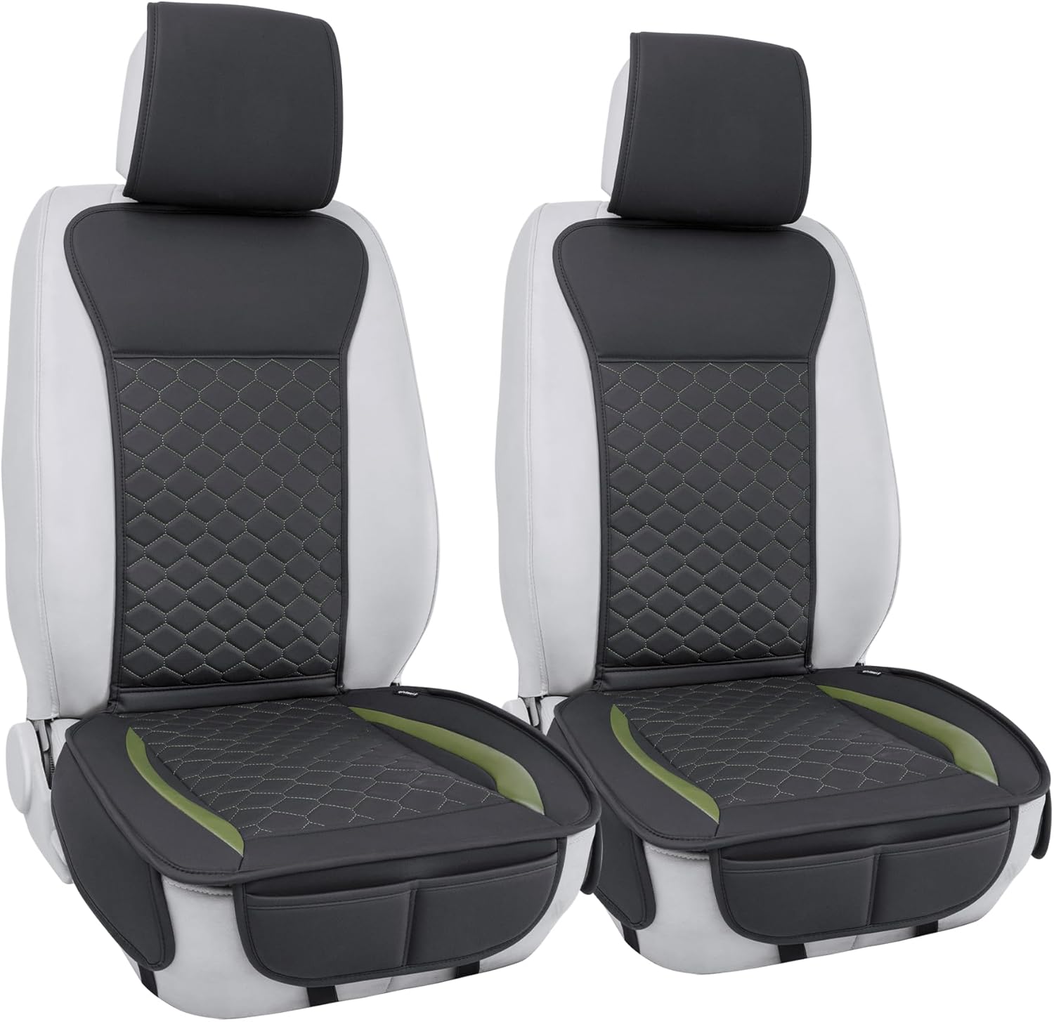 Elantrip 2PCs Front Car Seat Covers Leather Car Seat Protector Universal fit for Most Cars SUVs and Trucks Water Proof Seat Protector Black and Green