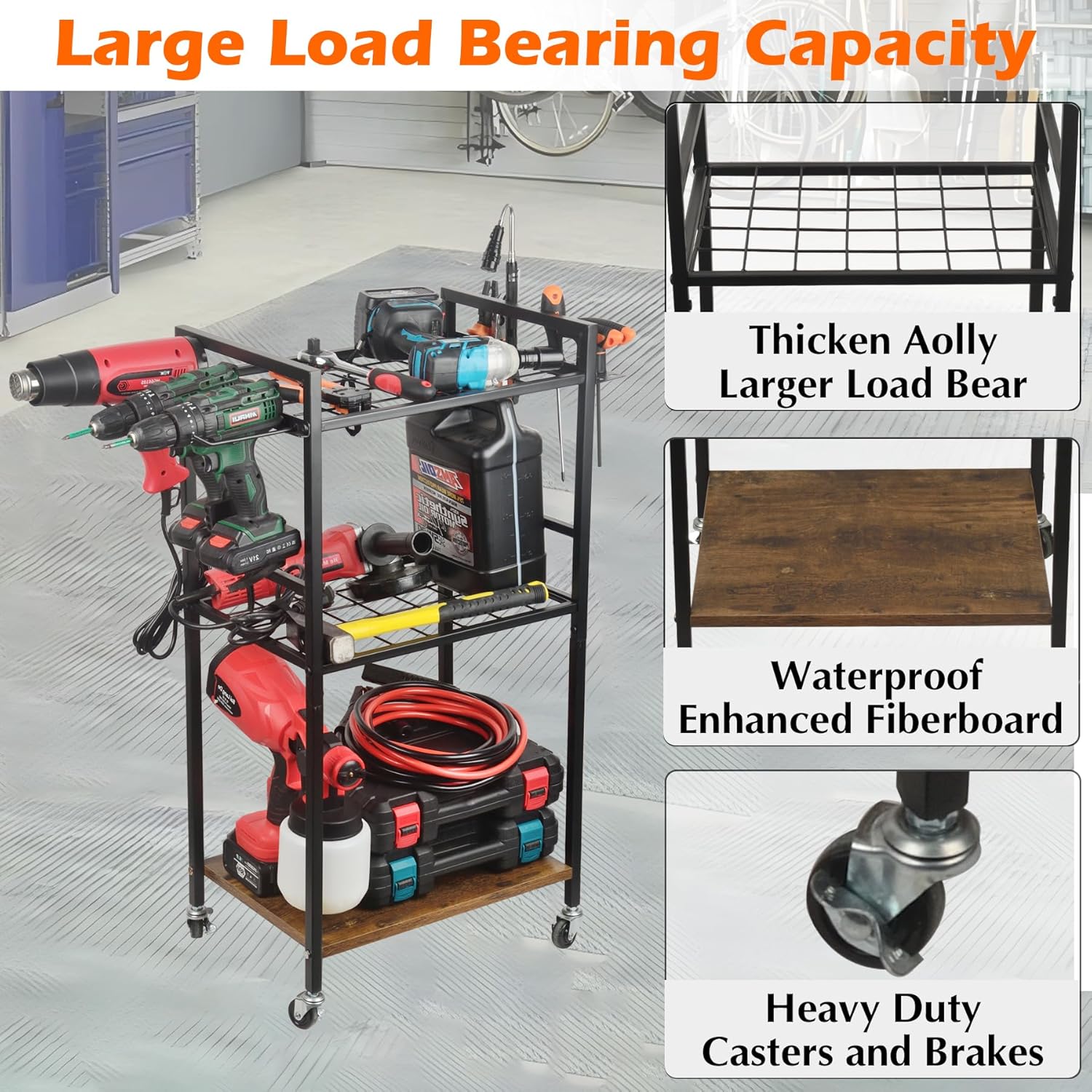 - 3-Tier Tool Storage Organizer: Robust shelves are designed to accommodate different sizes and types of tools, from small hand tools to larger power tools. The multi-layer design allows for efficient organization, making tools when needed easier