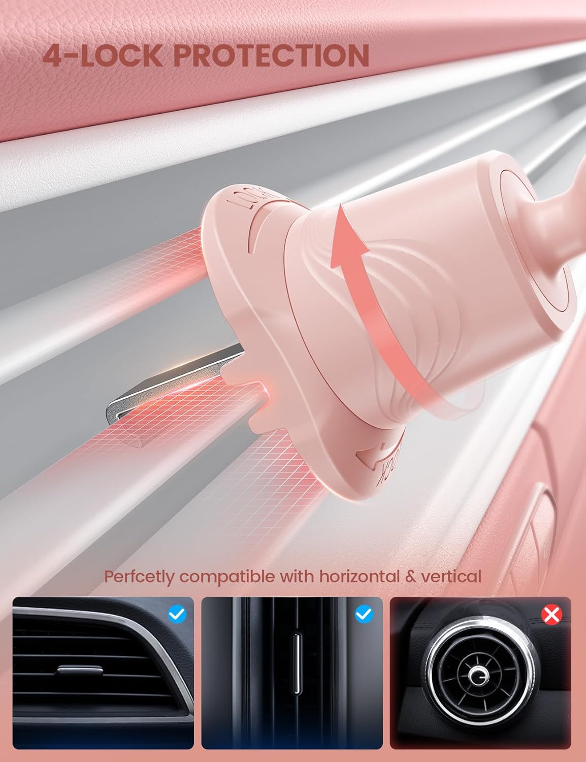 - Improved Stability with 4-Lock Protection: The Lamicall holder for cell phone in vehicle features an innovative 4-lock protection and is compatible with both vertical and horizontal car air vents, ensuring excellent stability even during sharp turns or bumpy roads. Note: Hook extension range 10 mm-29 mm. The thickness of the vent blade is less than 4.2 mm. Not suitable for Round Vent.