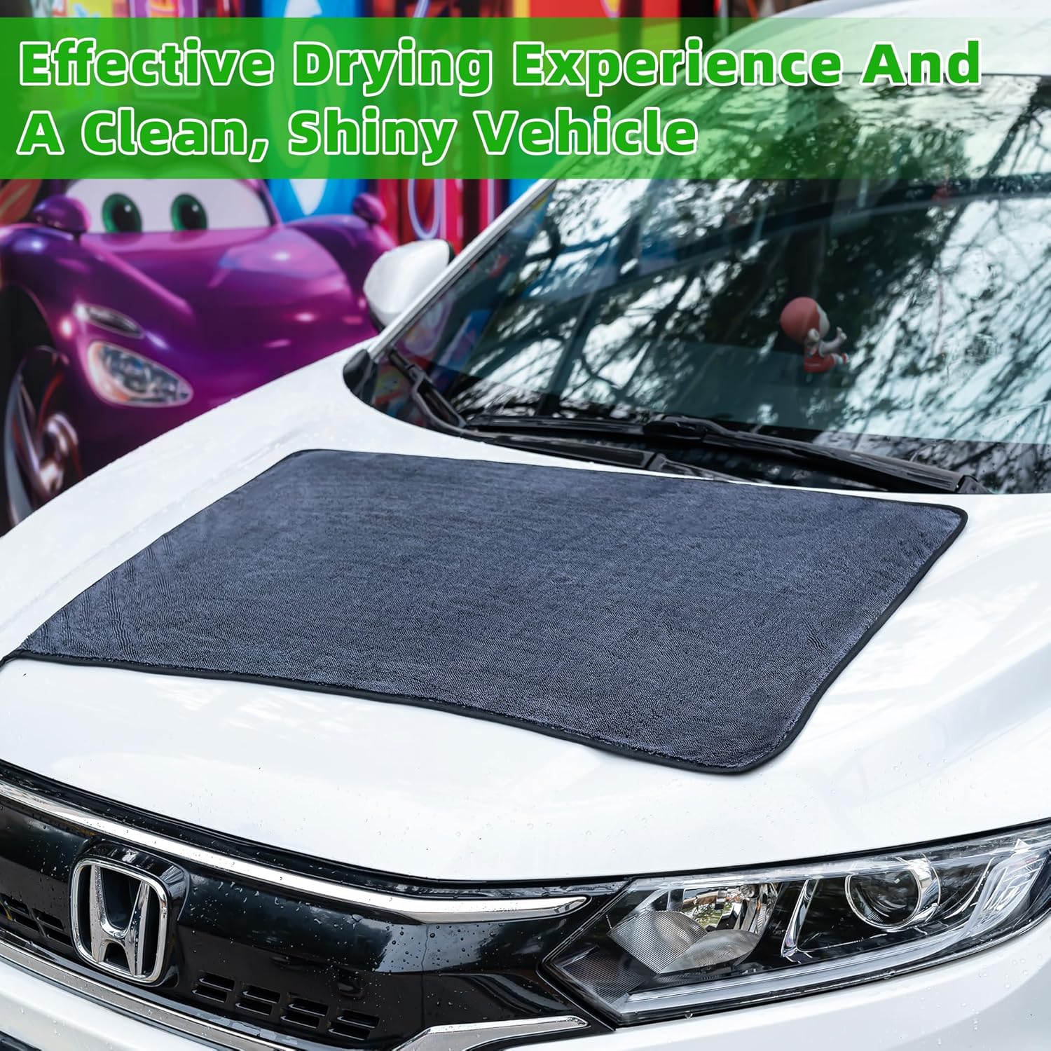 - Super Absorbent: Utilizing advanced twisting yarn microfiber technology which work to trap missed dirt and debris deep within its fibers and greatly increase the contact area with water, absorbing tons of water off the surface of any vehicle for a spot-free shine after a wash.