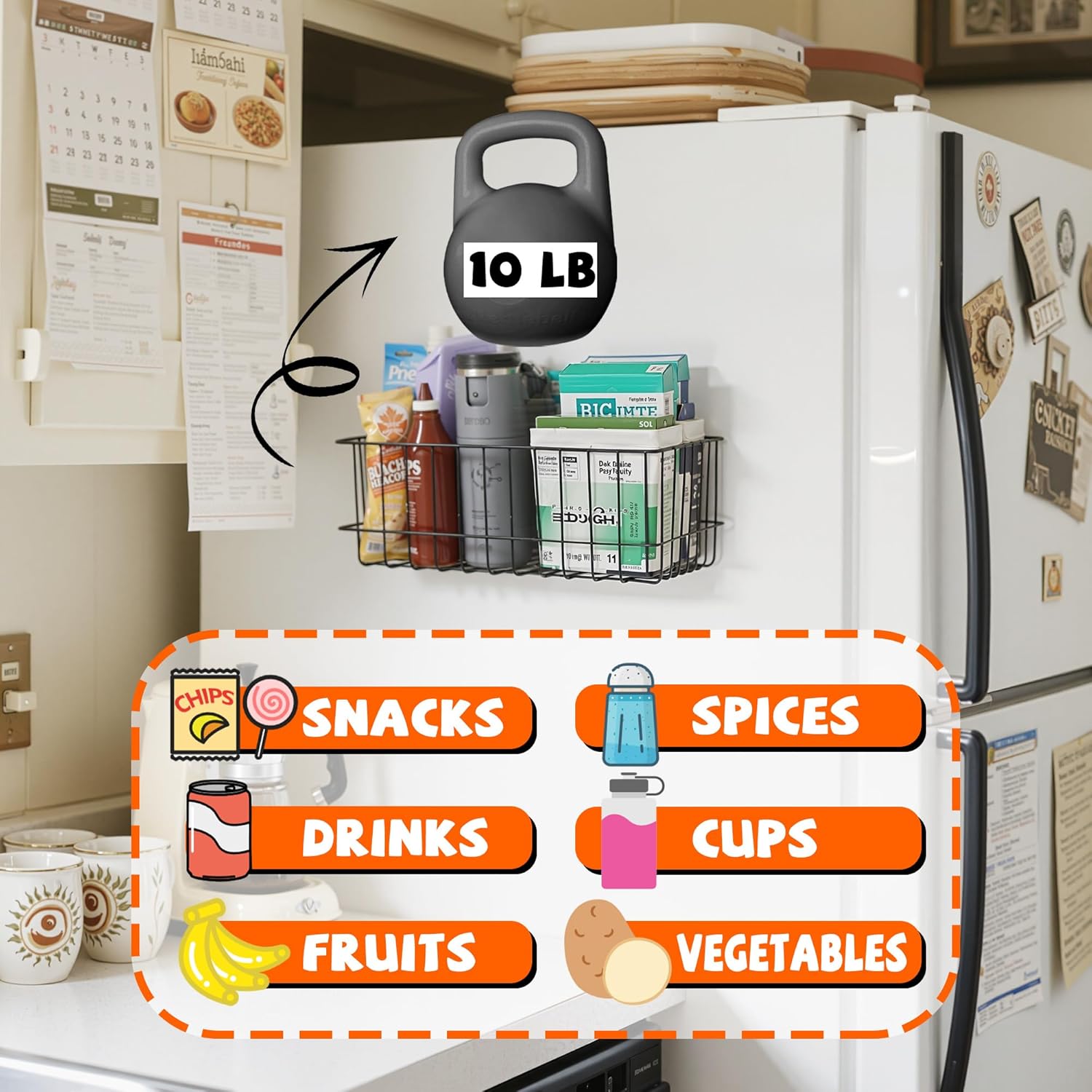 - [Space Saving Wire Magnetic Bins]: This magnetic storage basket makes full use of vertical space, turning metal surfaces into a practical storage area. Itβs ideal for organizing your non refrigerated fruits and vegetables, laundry supplies, garage tools, garden essentials, etc
