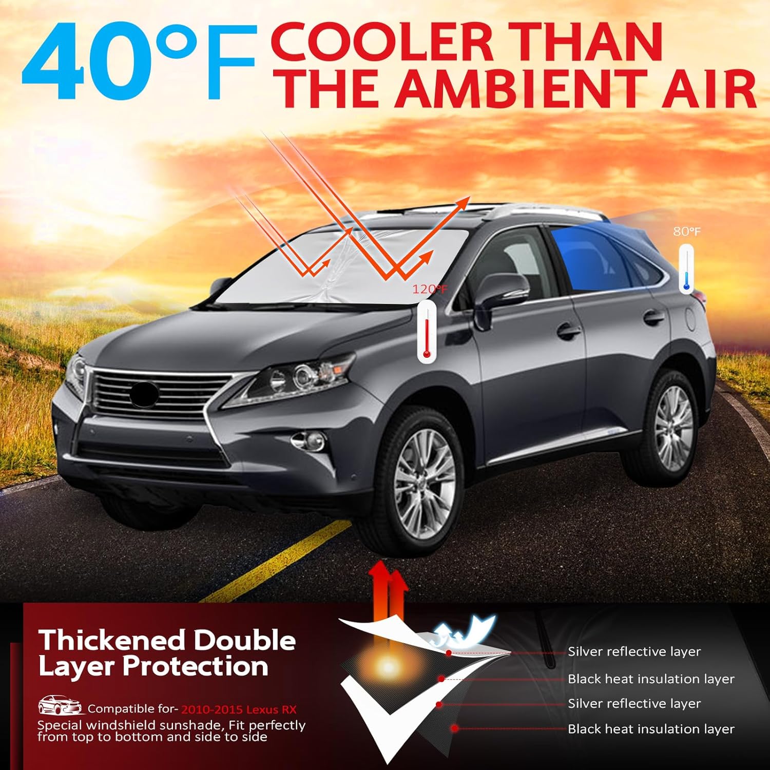 - KAYZT windshield sun shade is precise custom fit for 2010 2011 2012 2013 2014 2015 Le-xus RX, Thoroughly covers every corner of the windshield, Tailored to accommodate rear view mirror, Ensuring a seamless and snug fit without obstruction, Must have car accessories for Le-xus RX