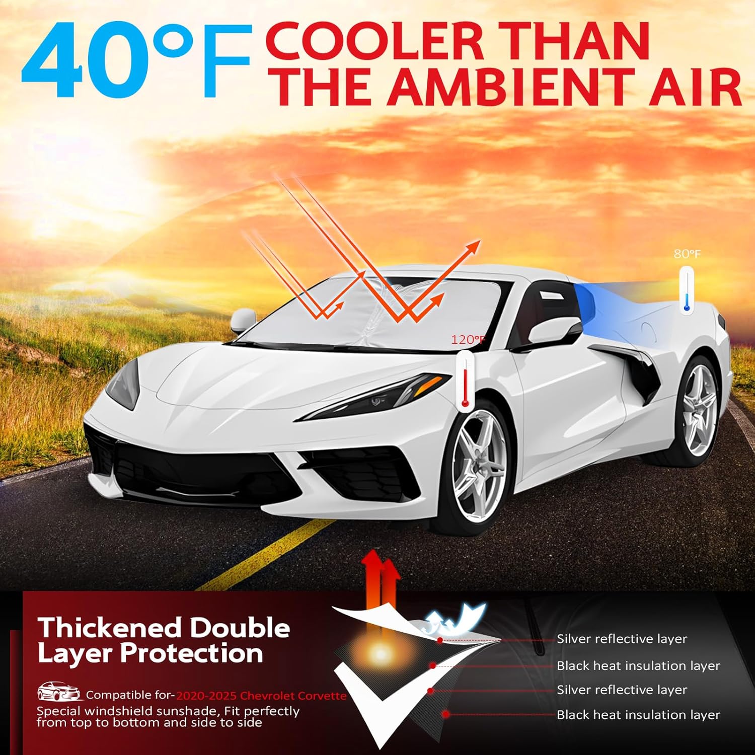 KAYZT Windshield Sun Shade for 2020-2025 Che-vrolet/Chevy Corvette Foldable Sunshade Front Window Custom Fit Car Accessories