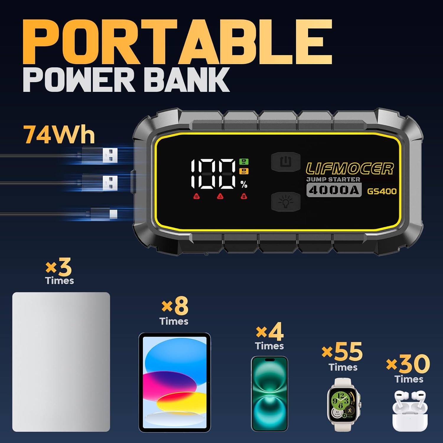 - ăCustomer ServiceăLIFMOCER supports 2 yesars of product quality assurance and 7 x 24h customer service. Please donât hesitate to contact us with any questions about our portable jump starter