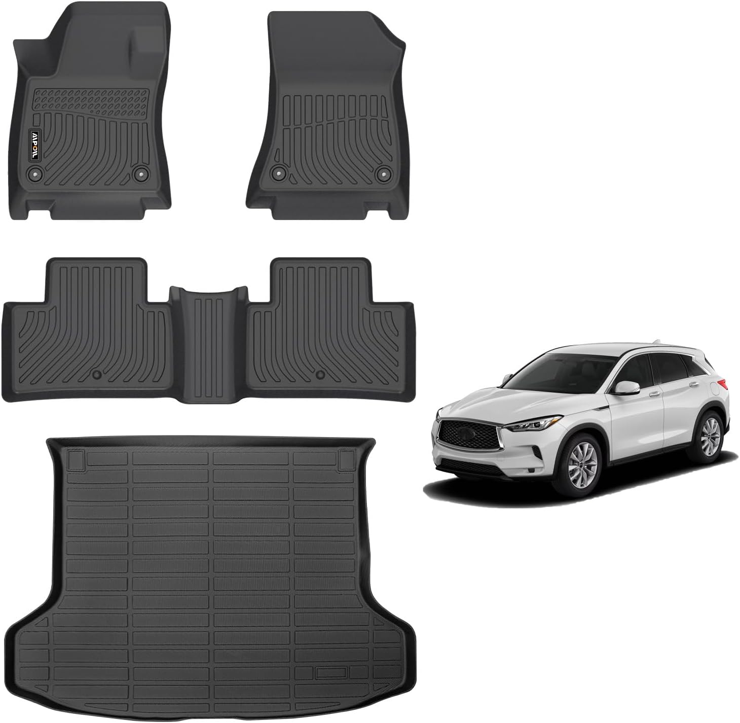 - 【CUSTOM FIT】AIPOIL Car Floor Mats and Cargo Liner Fit For Infinit QX50 2019 2020 2021 2022 2023 2024 2025 & 2022-2025 Infinit QX55. Car floor mats include front row, rear row, and trunk liner. 3D scanning technology is used to accurately scan the original car data. Details such as the accelerator and brake have been paid to during the design, which will not affect driving.