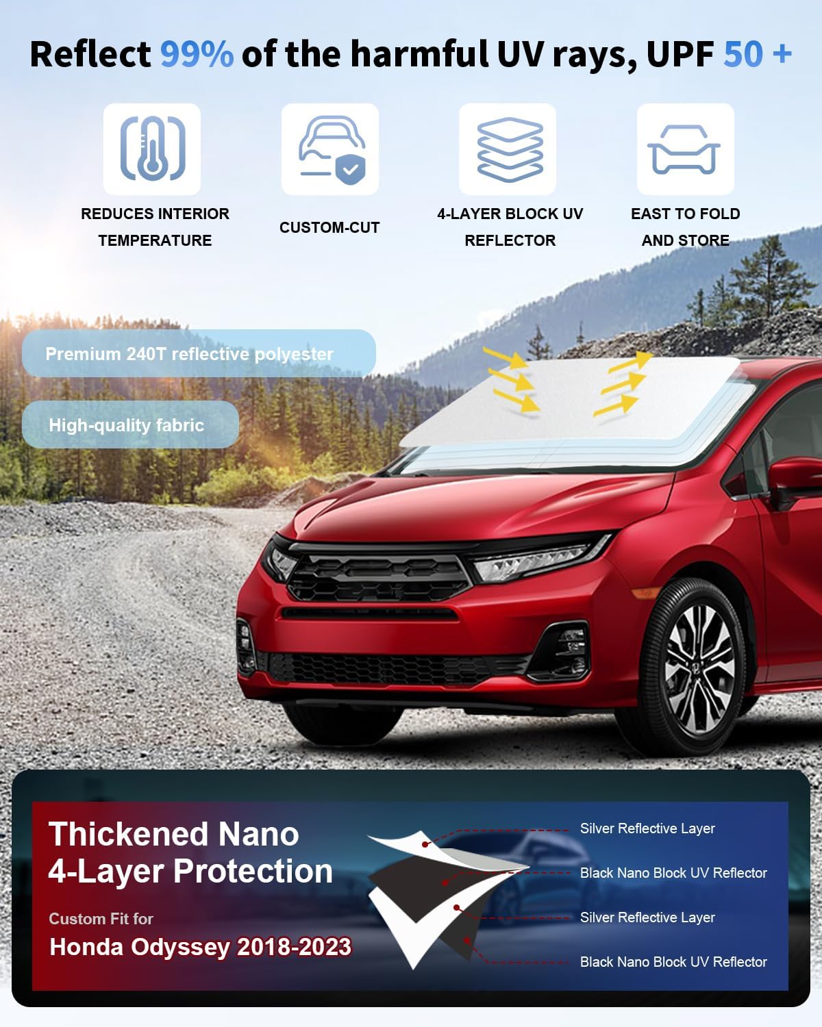 - [VEHICLE SPECIFIC] SLOGENTO Windshield Shade custom fit for 2018-2023 2024 2025 Honda Odyssey LX,EX,EX-L,Touring, Elite Minivan ,Full covered your windshield,No Gap,100% Perfect fit.